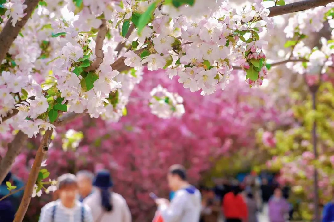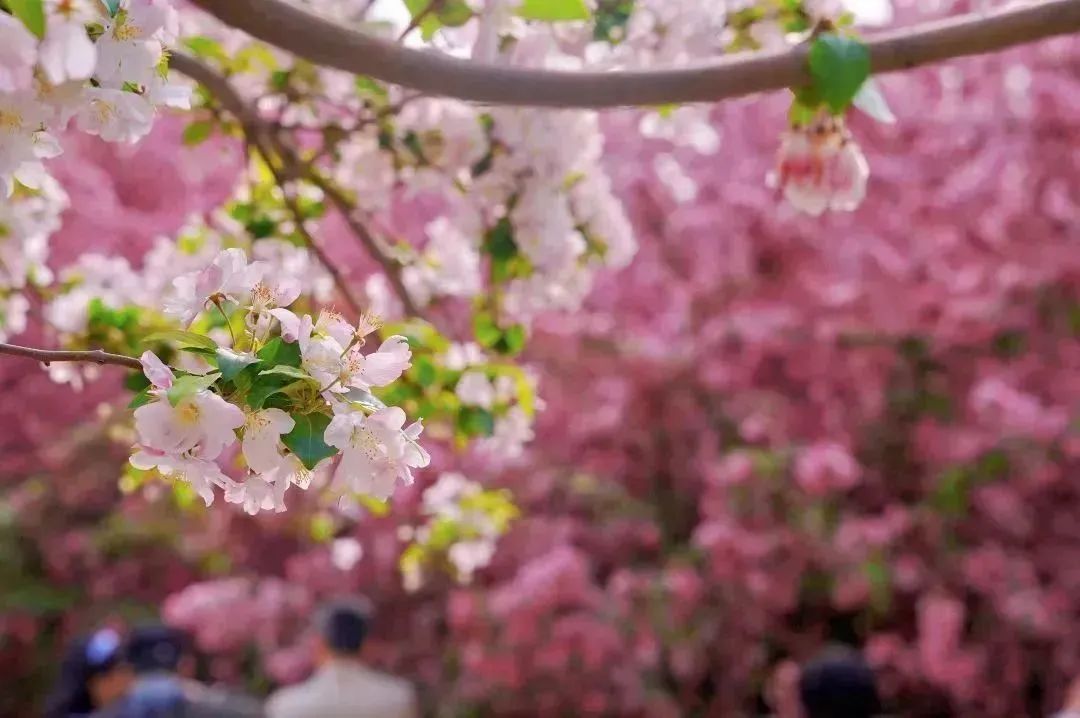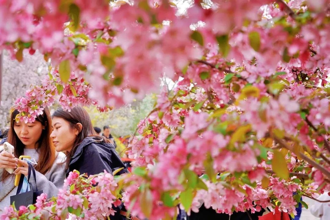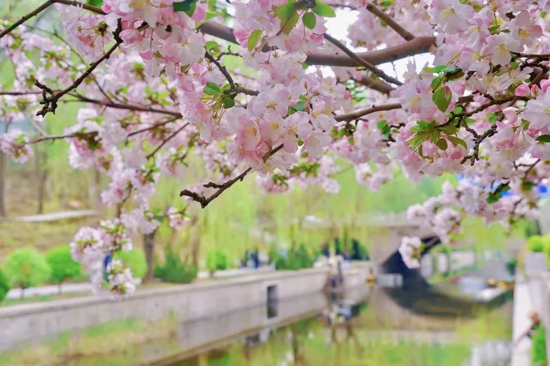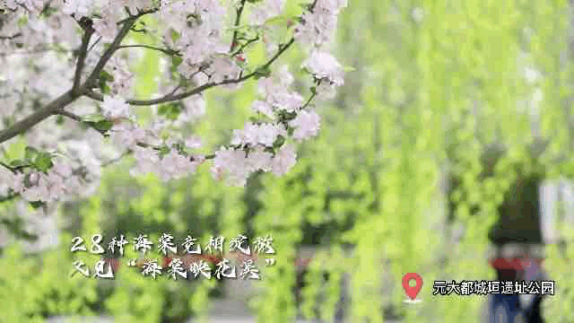 粉红色的垂丝海棠、粉色的西府海棠、淡粉色的果冻海棠、深粉色的绚丽海棠、白色的雪球海棠,白色、粉色、红色的海棠花把元大都城垣遗址公园妆点得异常美丽,红花绿树青溪相映成趣,是与玉渊潭的樱花、植物园的桃花相媲美的京城三大花事。