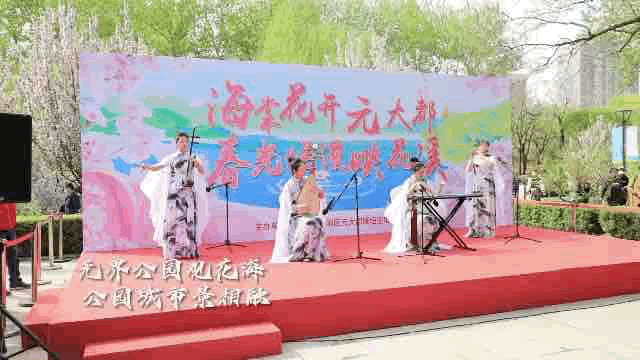 芳菲四溢的活动现场,精彩绝伦的文艺表演,沉浸式的游园体验,让大家身临其境去感受海棠之美,特别值得一提的是,现场设置了文明游园体验活动,由北京文明游园公益形象大使“文小明”、“游小园”带领公众进行文明游园,感受春日气息。它们活泼可爱的形象也吸引了很多的游客主动加入到文明游园活动中。