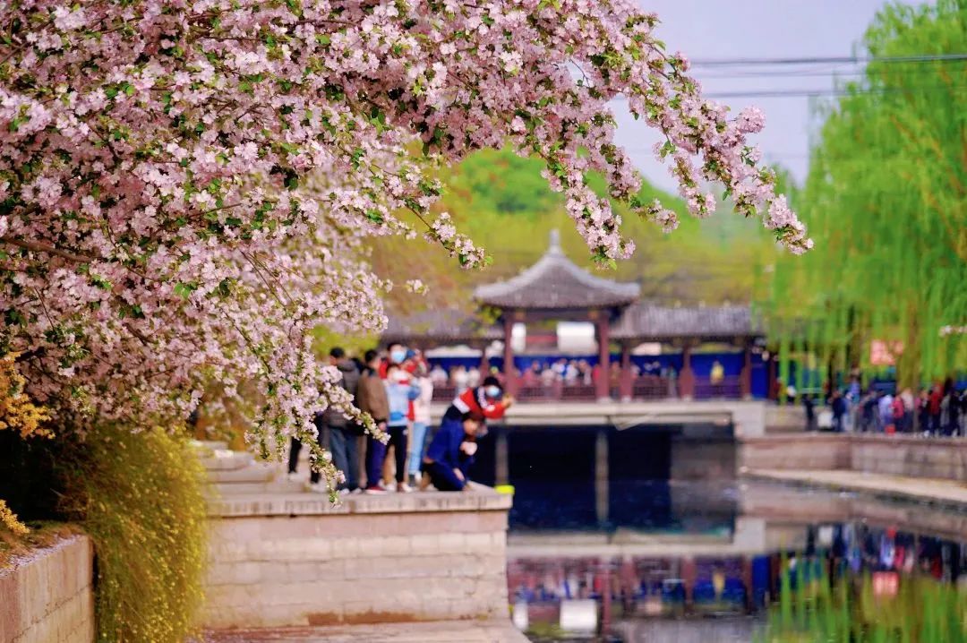 每年清明前后,元大都城垣遗址公园内的小月河两岸花开似锦,各色海棠绵延一公里,因此得名“海棠花溪”。