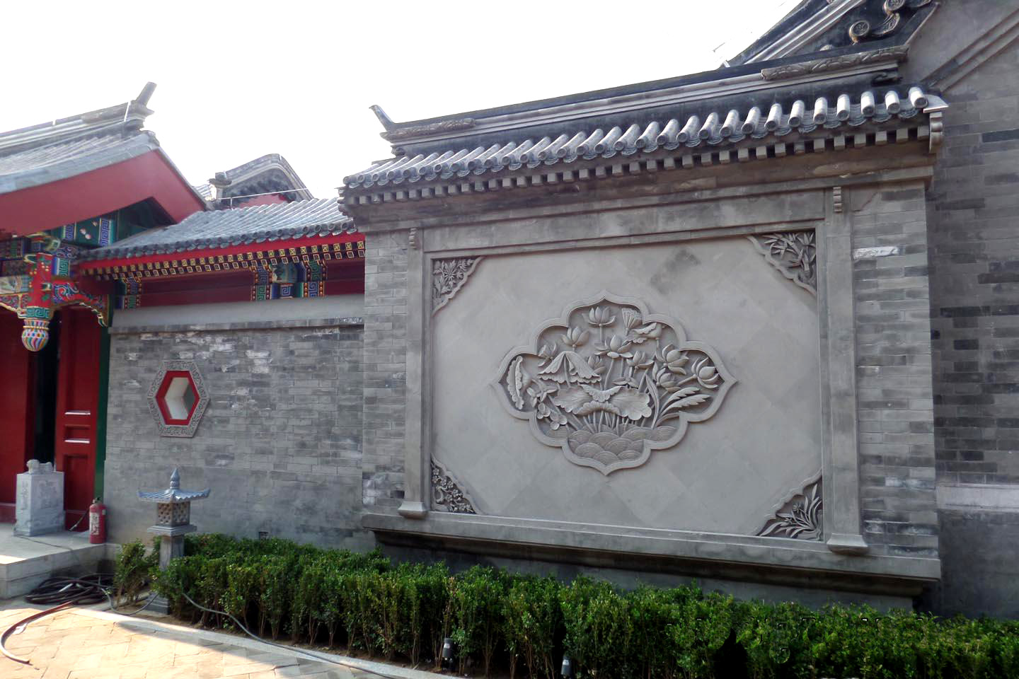走进白塔寺附近的丁章胡同,改建后的四合院建筑群以四季名花为主题,北京砖雕是其中的点睛之笔。院门一侧的廊心墙上,荷花舒展花瓣,叶片随风微卷,下有水波流动,一幅“夏日莲荷映满池”的画面跃然于墙上。
