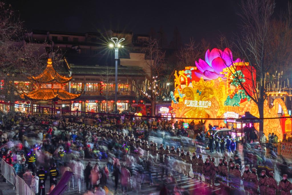 游客在南京夫子庙景区观景赏灯(2月4日摄)。新华社记者李博 摄