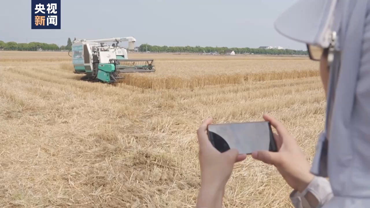 总台记者 杨滢:在江苏省苏州市吴江区的同里镇,按照小麦收获从南至北的规律,这里也是江苏最早收获的地区之一,小麦种植面积近万亩,通过航拍画面我们可以看到一望无际的规整的农田,金色麦浪随风涌动。收割机正在麦田中缓缓行驶,进行全程机械化收割。