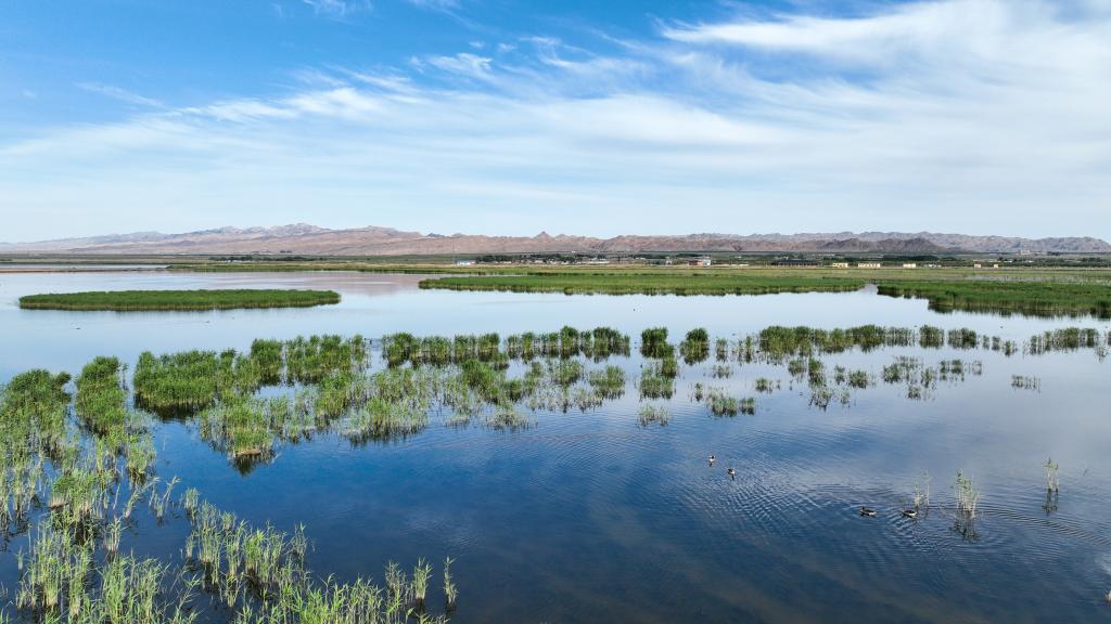 6月4日拍摄的位于内蒙古巴彦淖尔市乌拉特前旗的乌梁素海风光(无人机照片)。新华社记者 贝赫 摄