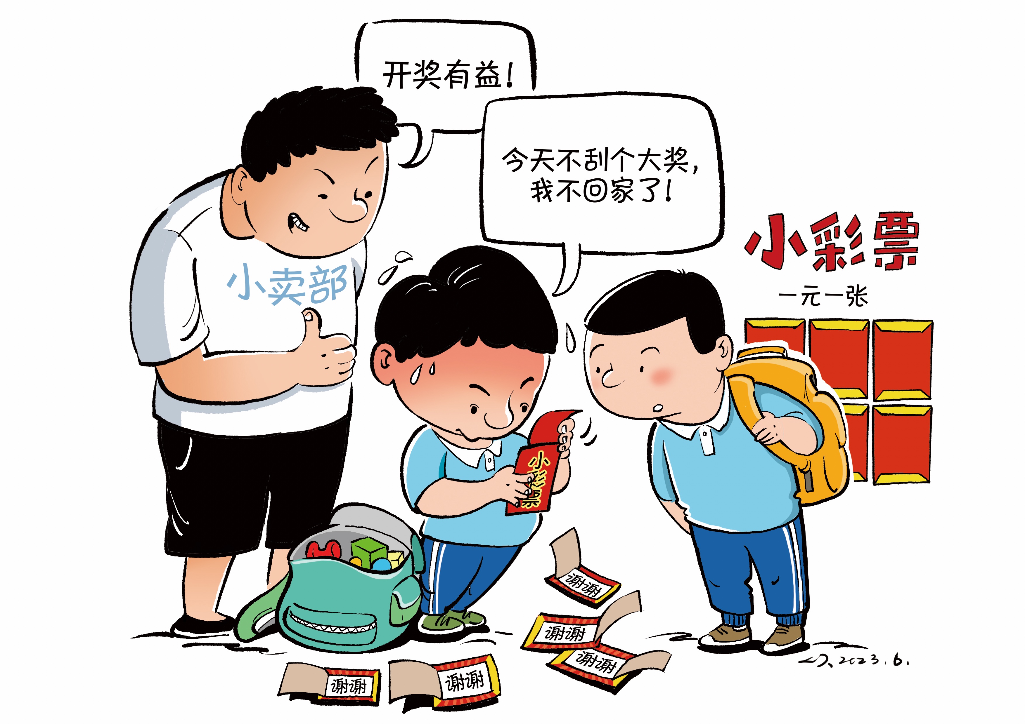 近来,“一元小彩票”风靡无锡等地中小学周边小卖部,有“现金奖励型”和“玩具奖励型”,更多的是“谢谢惠顾”,奖品也多是三无产品,甚至不乏含有低俗、软色情内容的玩具。不少孩子越刮越上瘾,容易过早形成投机心理;因此触发多起未成年人盗窃、聚众斗殴事件,更不容小觑。莫让“一元小彩票”刮坏孩子身心。