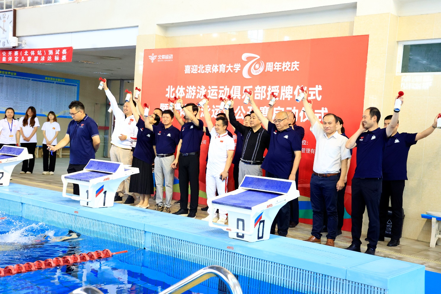 在北京体育大学成立70周年之际,北京体育大学中国游泳运动学院发挥“大学+基地”办学定位优势,秉承高效资源服务社会、服务全民健身、服务体育强国的理念,联手北体运动,共同创办了北体游泳运动俱乐部。7月15日,北体游泳运动俱乐部成立仪式在北体大游泳馆举行。
