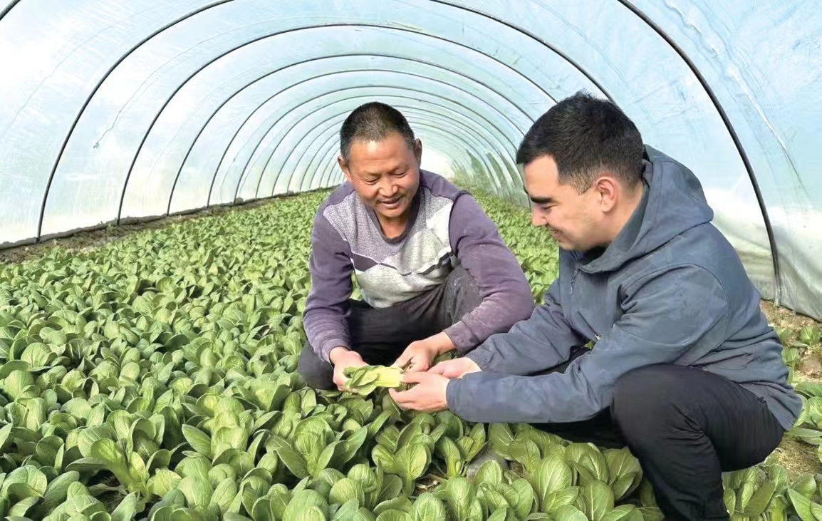北京银行乌鲁木齐分行驻村工作队指导村民通过现代化蔬菜种植推动乡村振兴。