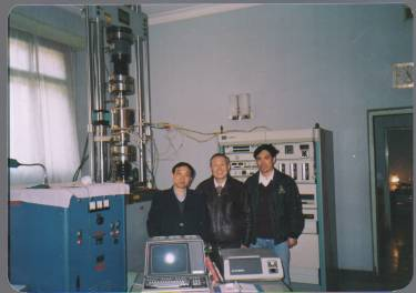 20世纪80年代在华东石油学院试验室与研究生进行海洋钢结构疲劳试验(中为方华灿) 新华社发