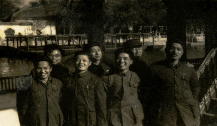 1952年在清华大学石油系与系内部分青年教师合影(前排左二为方华灿) 新华社发
