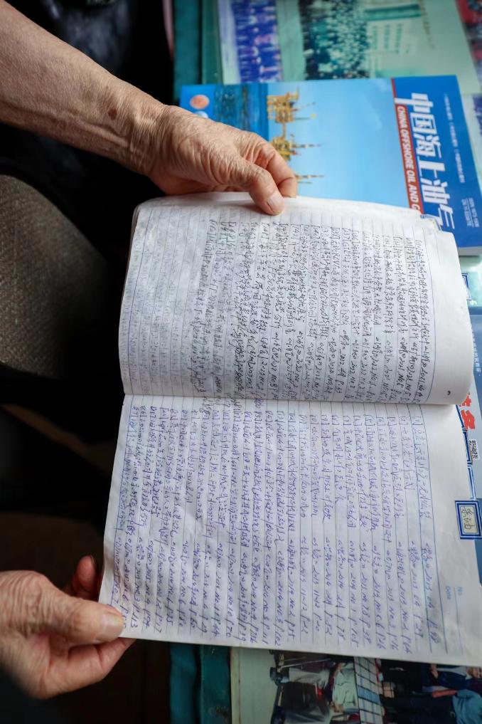 2024年7月9日,方华灿展示讲座前查询的学术资料笔记 新华社发