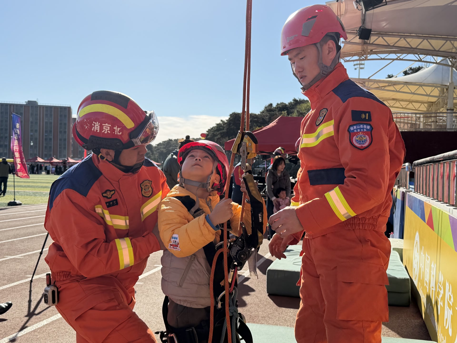 搭建绳索救援系统、无人机抛投物资、生命探测仪运转等演示也吸引了不少师生与市民观看与体验,此外,云梯车更是现场装备中的“明星”,一旁排起体验云梯车升空的长队。“以前只在电视上看到过这种消防车,没想到今天我能站在这么高的云梯车上亲身体验一次,这种感觉紧张又刺激。”一位参与体验的学生感叹道。