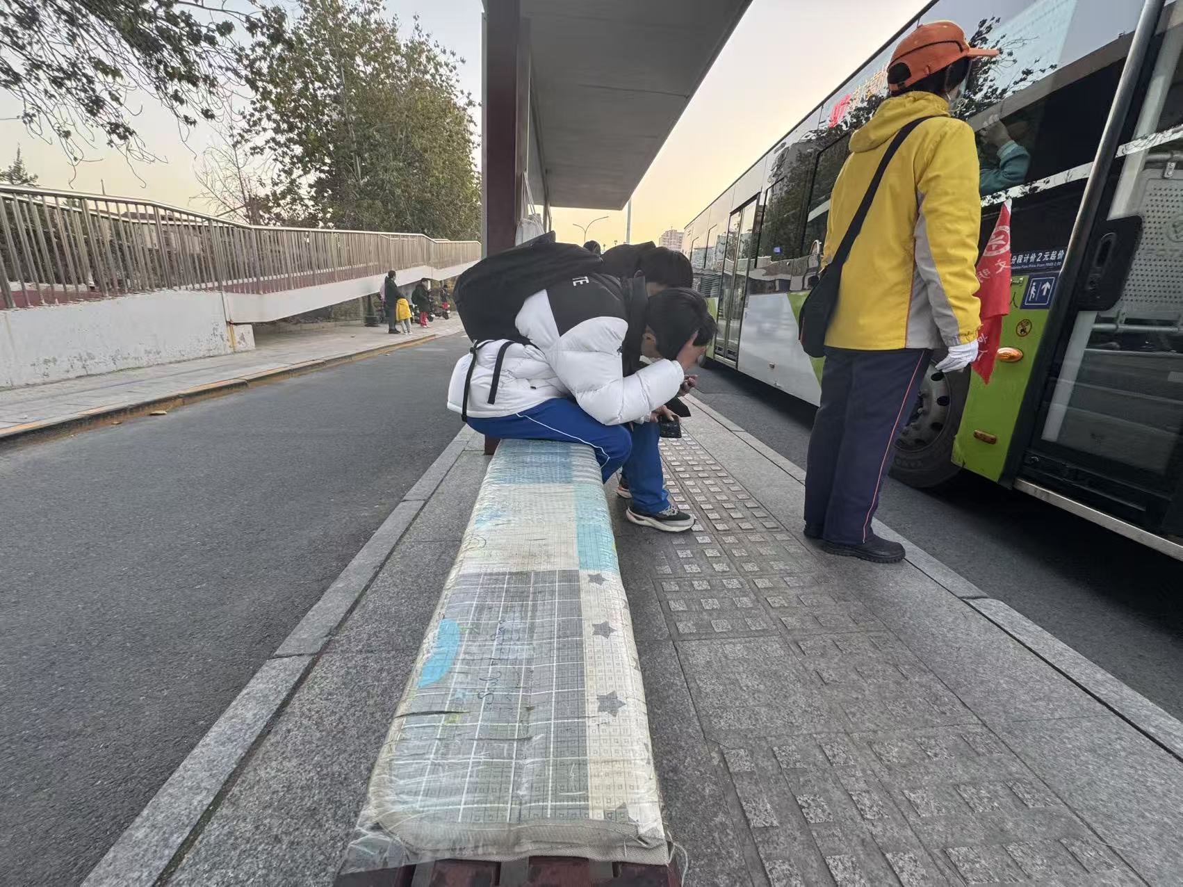 据市气象台消息,今天夜间至17日本市将迎来大风强降温天气。记者在门头沟区永定中学、朝阳门外大街等多地看到,公共文明引导员们利用休息时间,自发找来各类材料,动手制作暖心坐垫,为公交站台的座椅穿上“保暖衣”,在日渐寒冷的天气中,为候车市民送去一份触手可及的温暖。