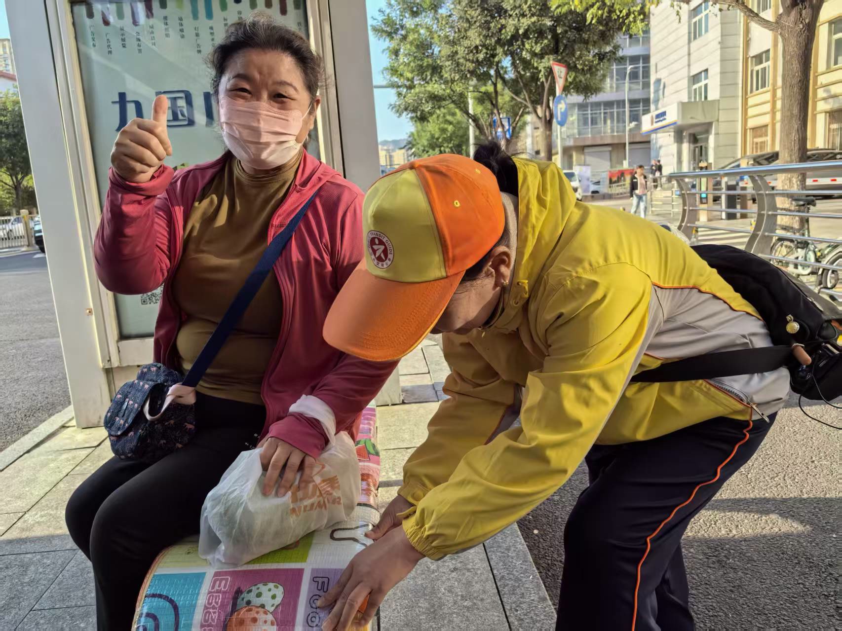 在朝阳门外大街周边的神路街等9个公交站点,12个候车座椅也铺上了瑜伽垫和儿童坐垫。这项暖心举措,文明引导员也已坚持了十年。朝外街道文明引导员中队长许春英回忆,2013年她初次值守时,发现不少老人买菜、看病归来身体疲惫,却因座椅冰凉而不敢就座,由此萌生了制作坐垫的想法。“但当时人手不足,直到2015年引导员全员到岗后,我们才开始动手制作。”