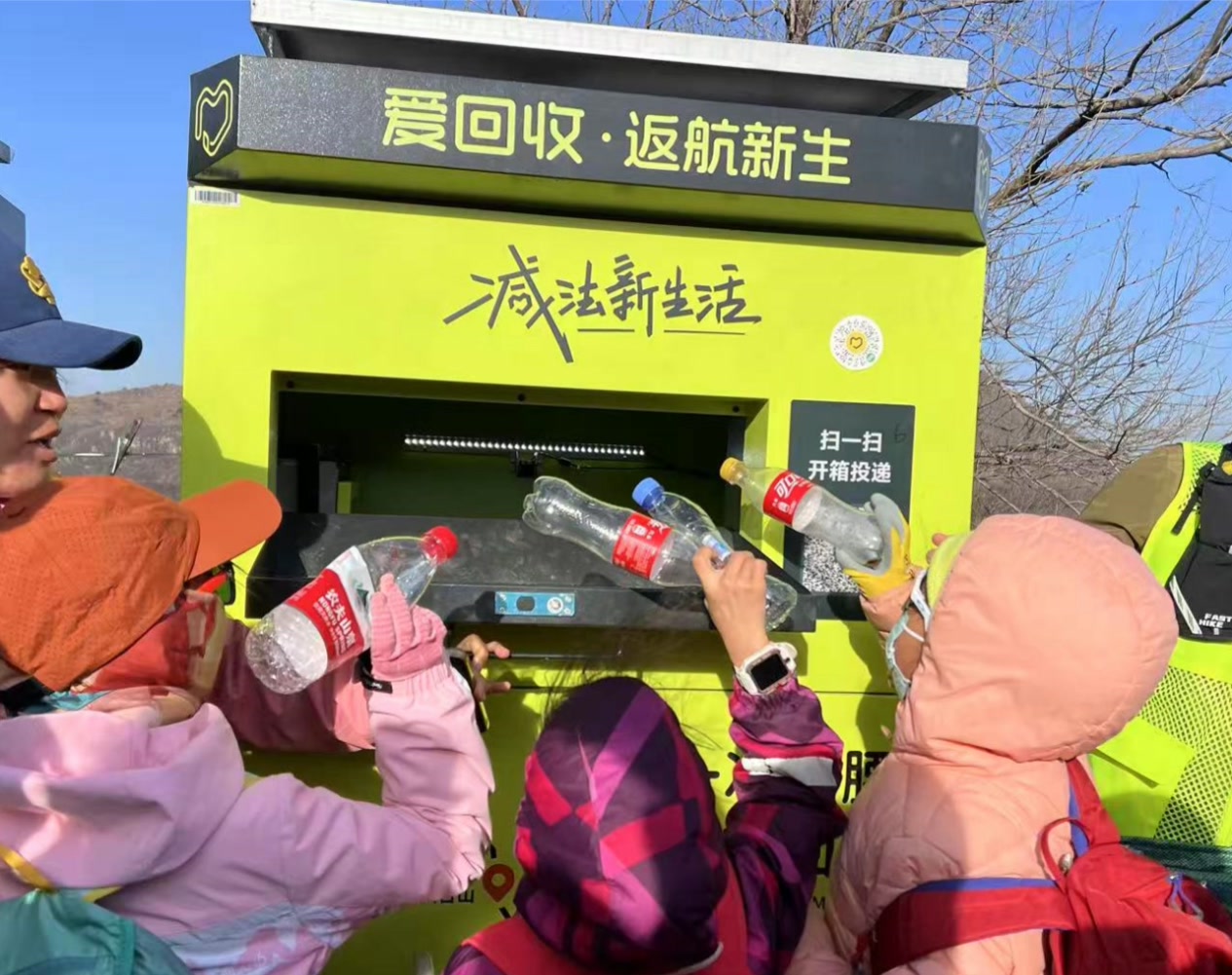 11月15日,北京市门头沟区妙峰山镇涧沟村,爱回收“返航新生”项目将国内首批户外太阳能智能回收机在此投放,主要部署于徒步路线“三峰环线”沿线。在登山、徒步游玩路上,人们喝完的空瓶可以就近完成智能回收了。