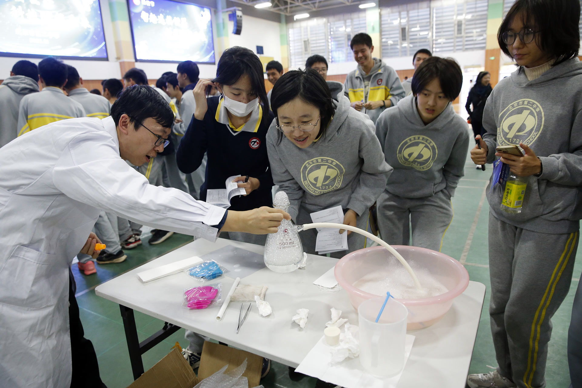 北京第二中学校园科技节日前举办。科技节以“智趣连接世界,科技赋能未来”为主题,开设了科技互动体验、现场制作竞赛等10余个项目。其中,机器人灵巧手、地空两栖机器人、灵芯派机械狗、仿生机器锦鲤等展示体验项目吸引了大批学生参与。这些沉浸式、互动式的体验,点燃了学生探索未知的火种,激发了他们的创新意识。
