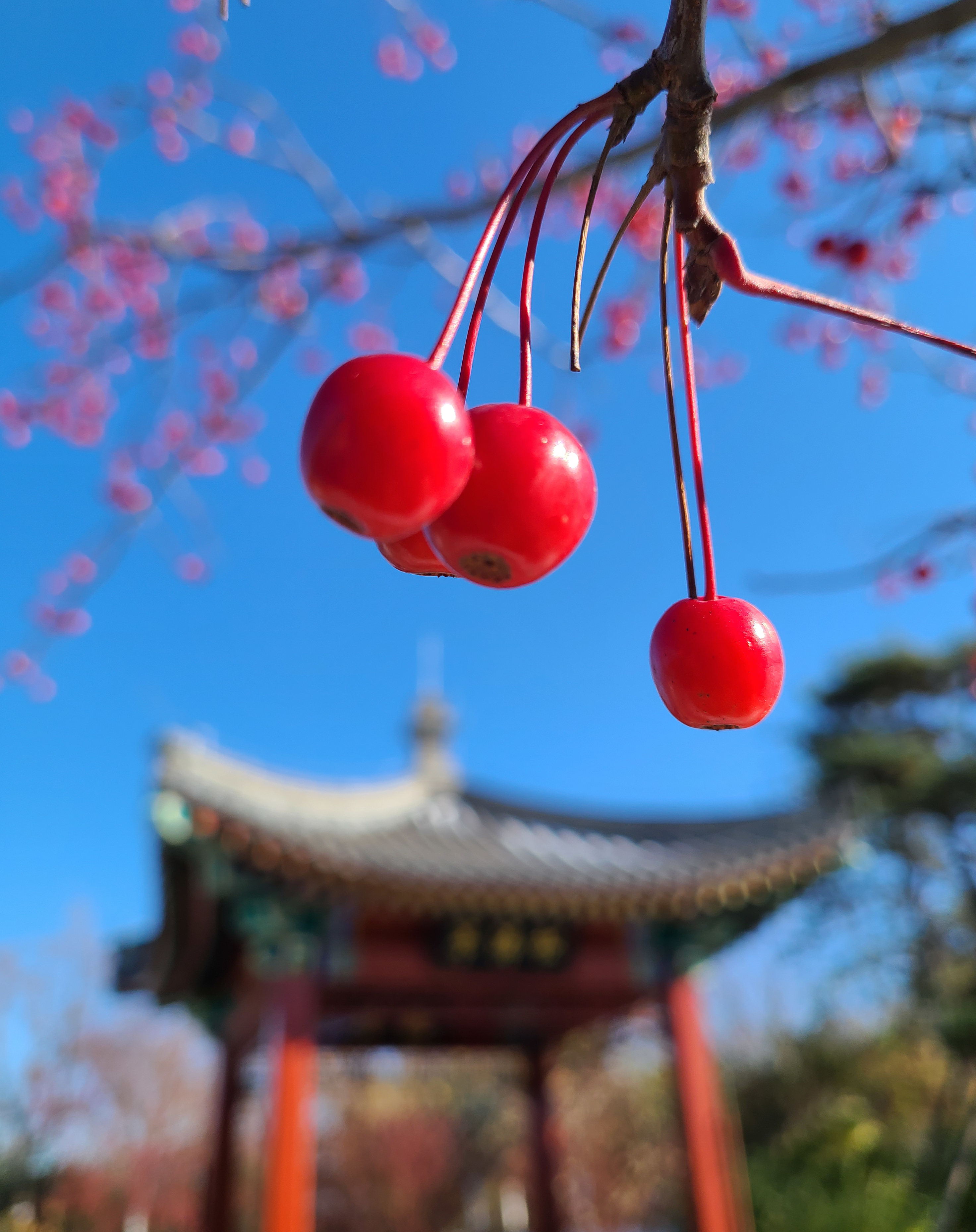 通州镜湖之滨,海棠成为初冬独特风景线!
