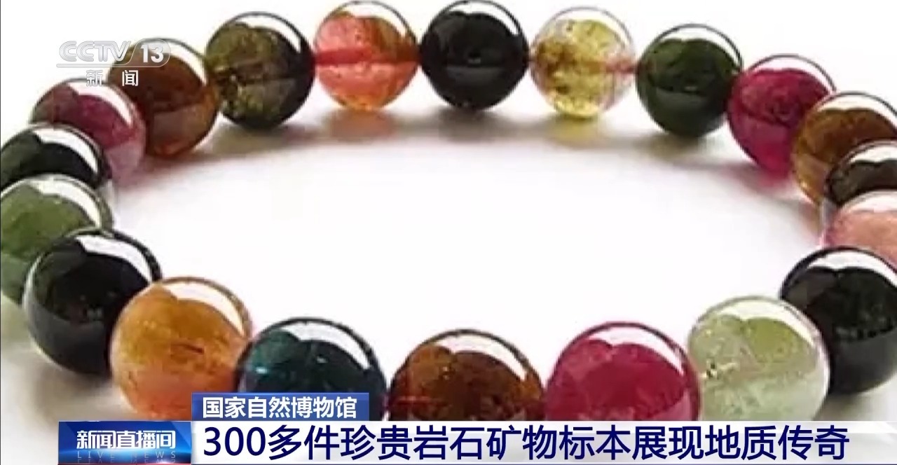 国家自然博物馆展览策划部主任 苗雨雁:碧玺五彩缤纷,每一块都不一样,因为它的成分很复杂,含有像铬、铁、锰等微量元素,这些微量元素就像大自然的魔法师,会让碧玺呈现出绚烂又别致的色彩。