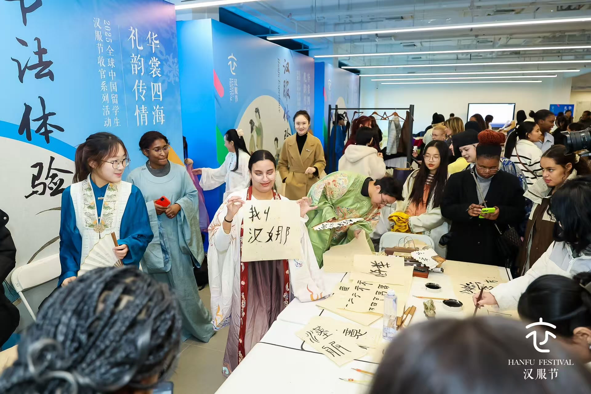 投壶、画扇、穿汉服……近日,“华裳四海,礼韵传情——2025全球中国留学生汉服节收官盛典”在北京服装学院通州校区举行。来自43个国家和地区的100余名留学生体验汉服文化。