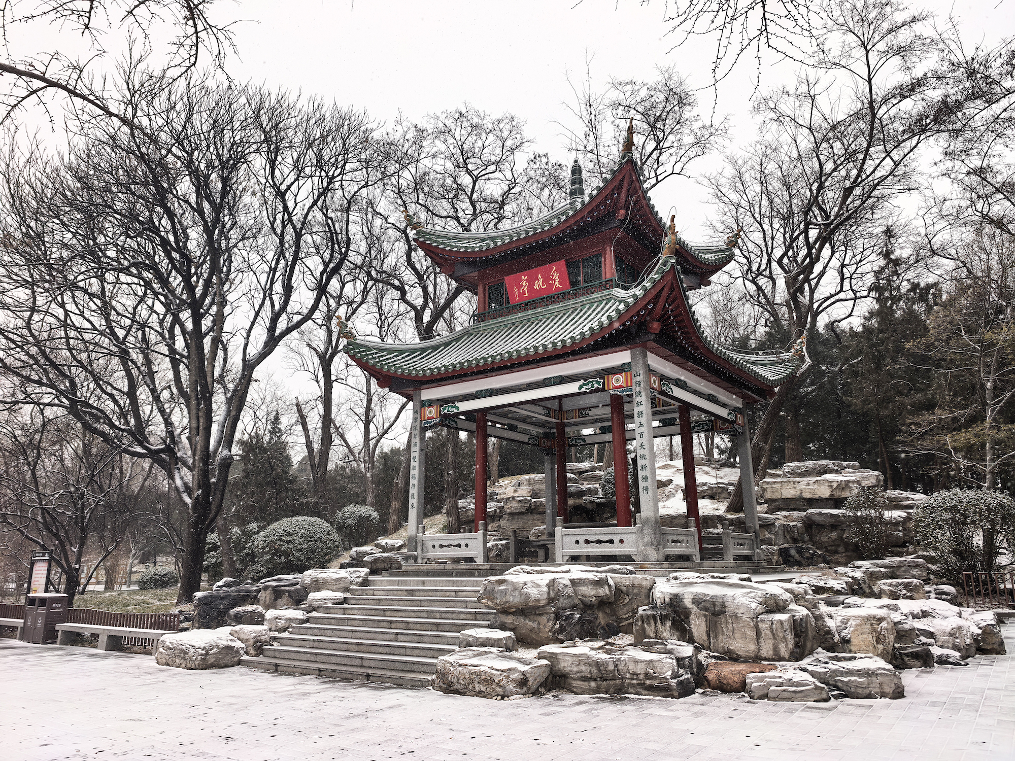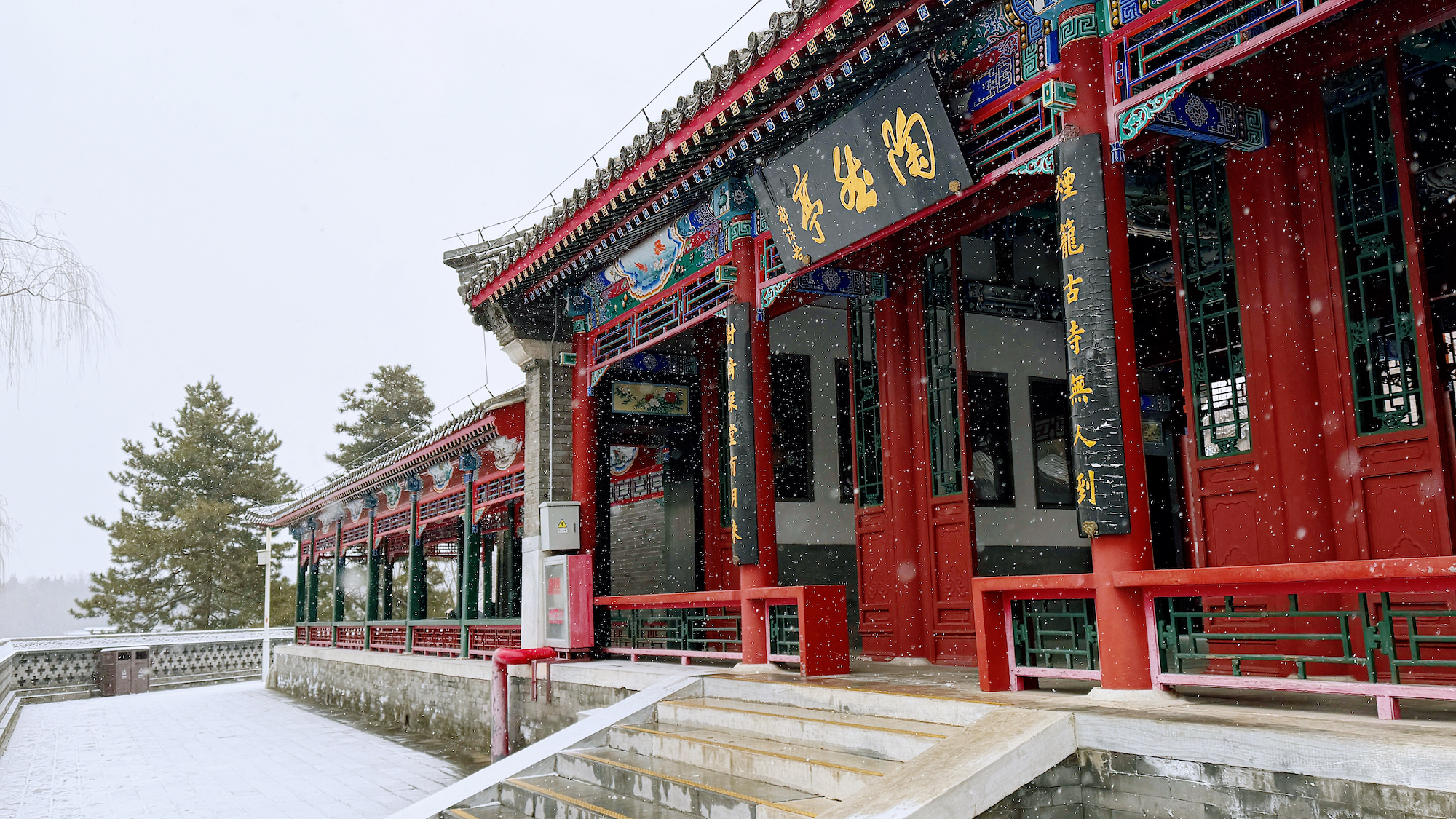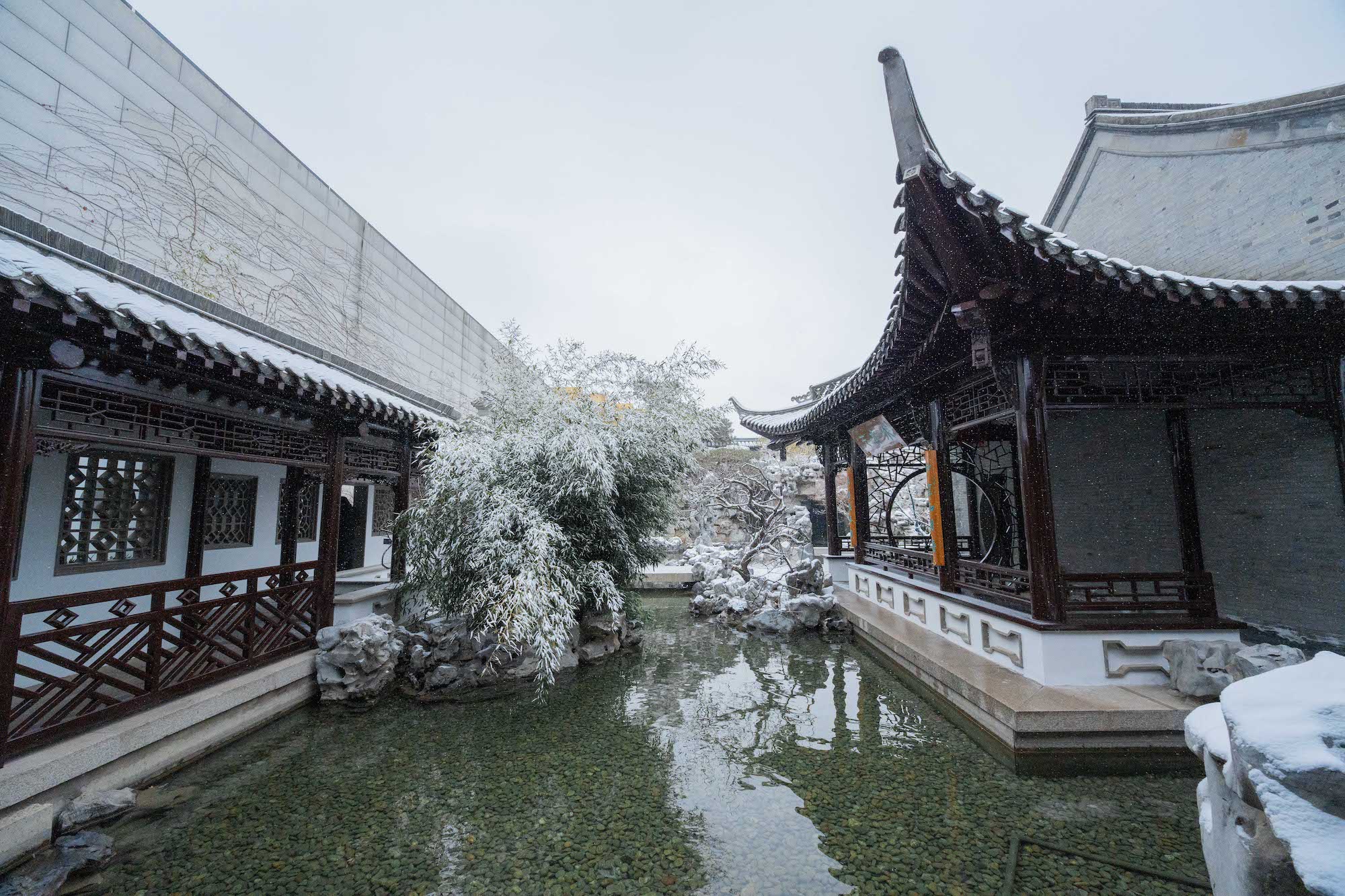 雪落无声,园影如画