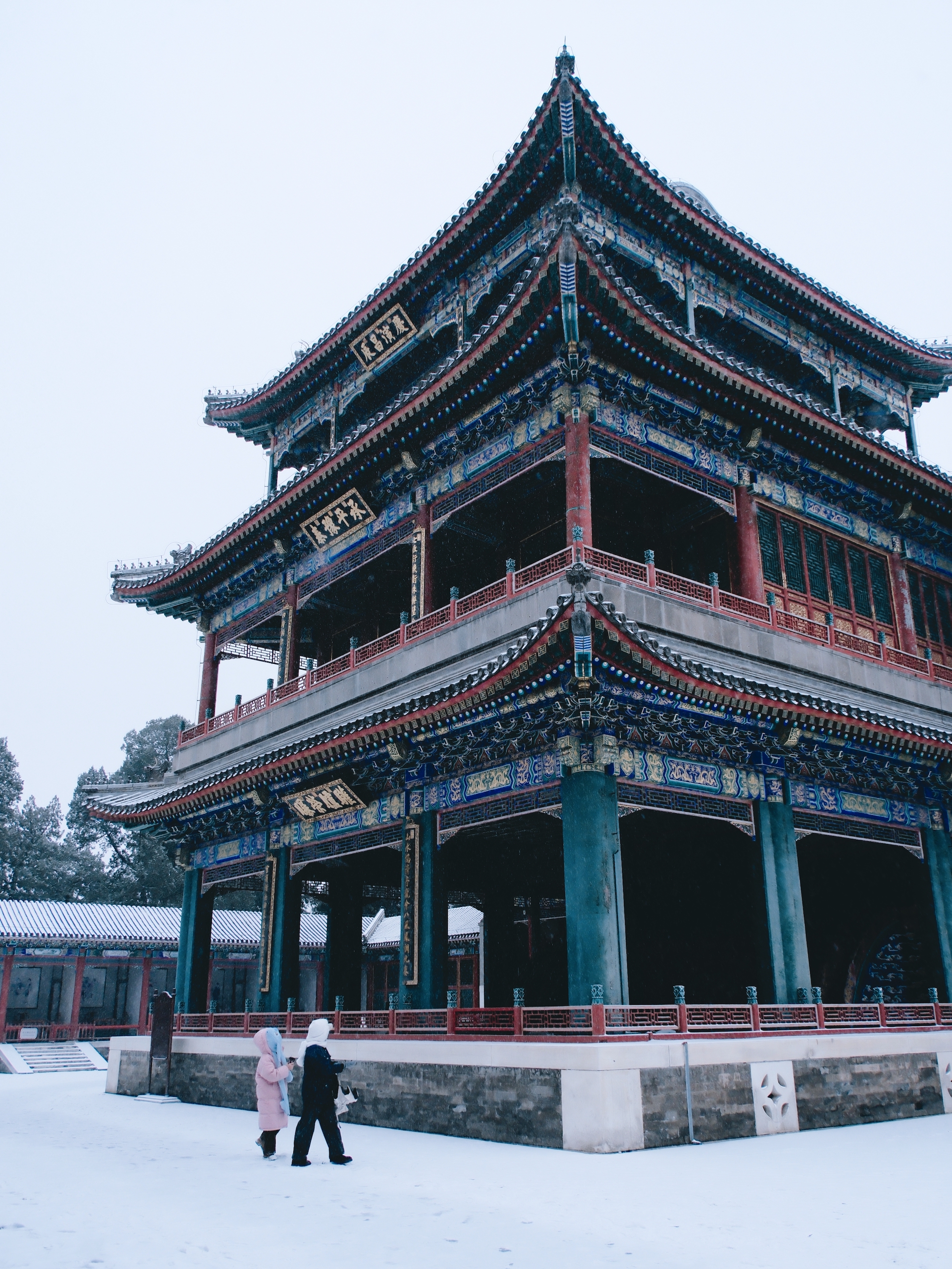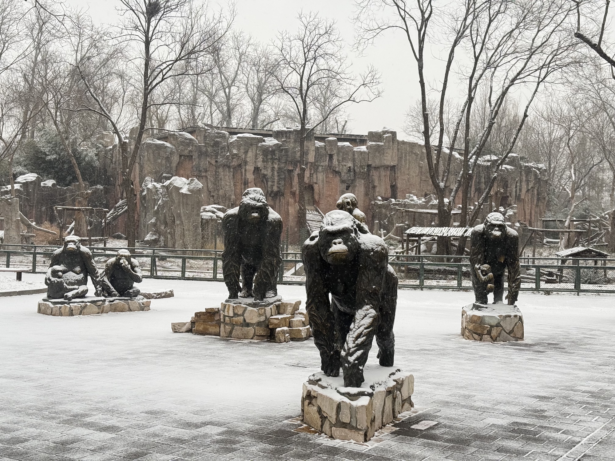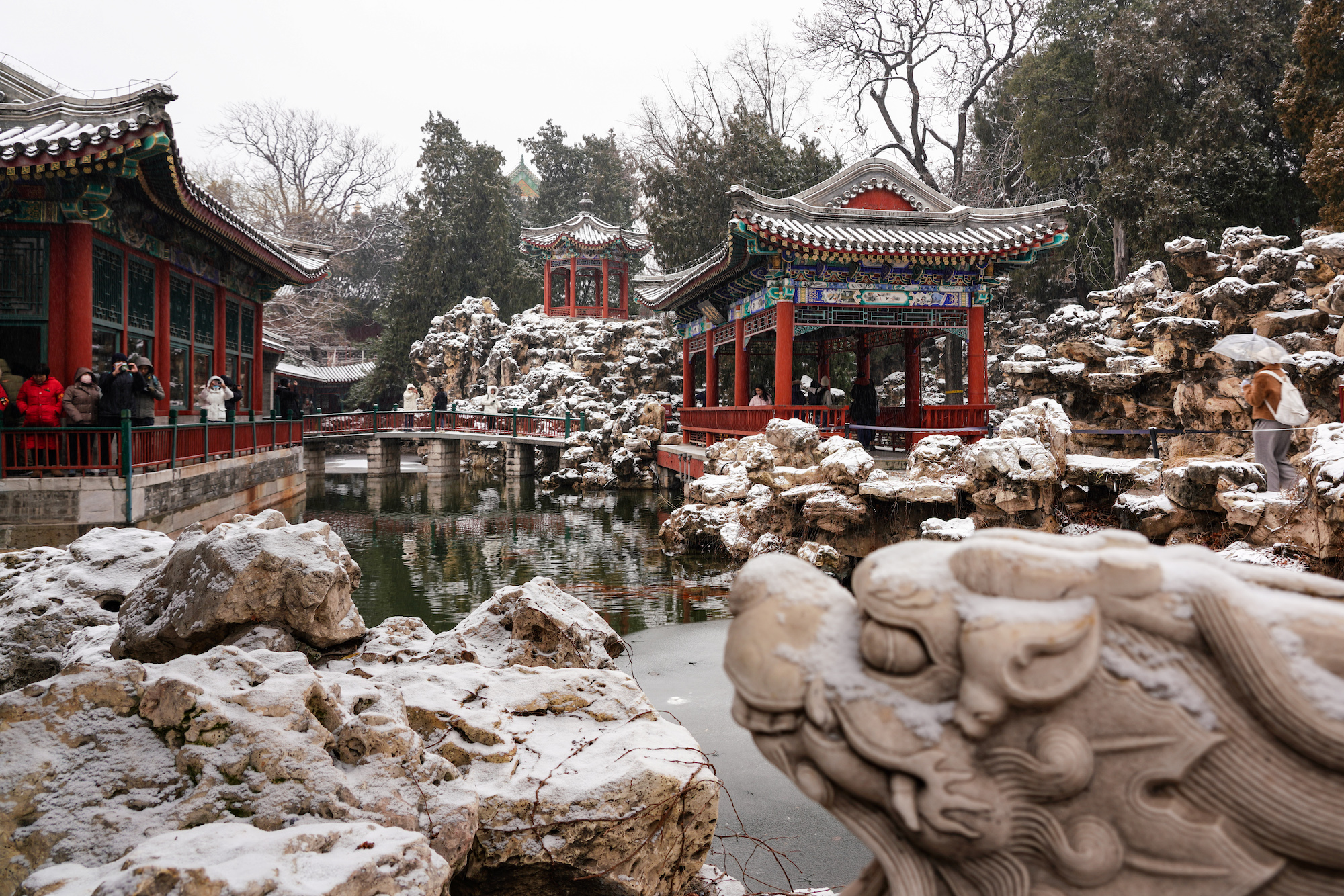 雪落无声,园影如画
