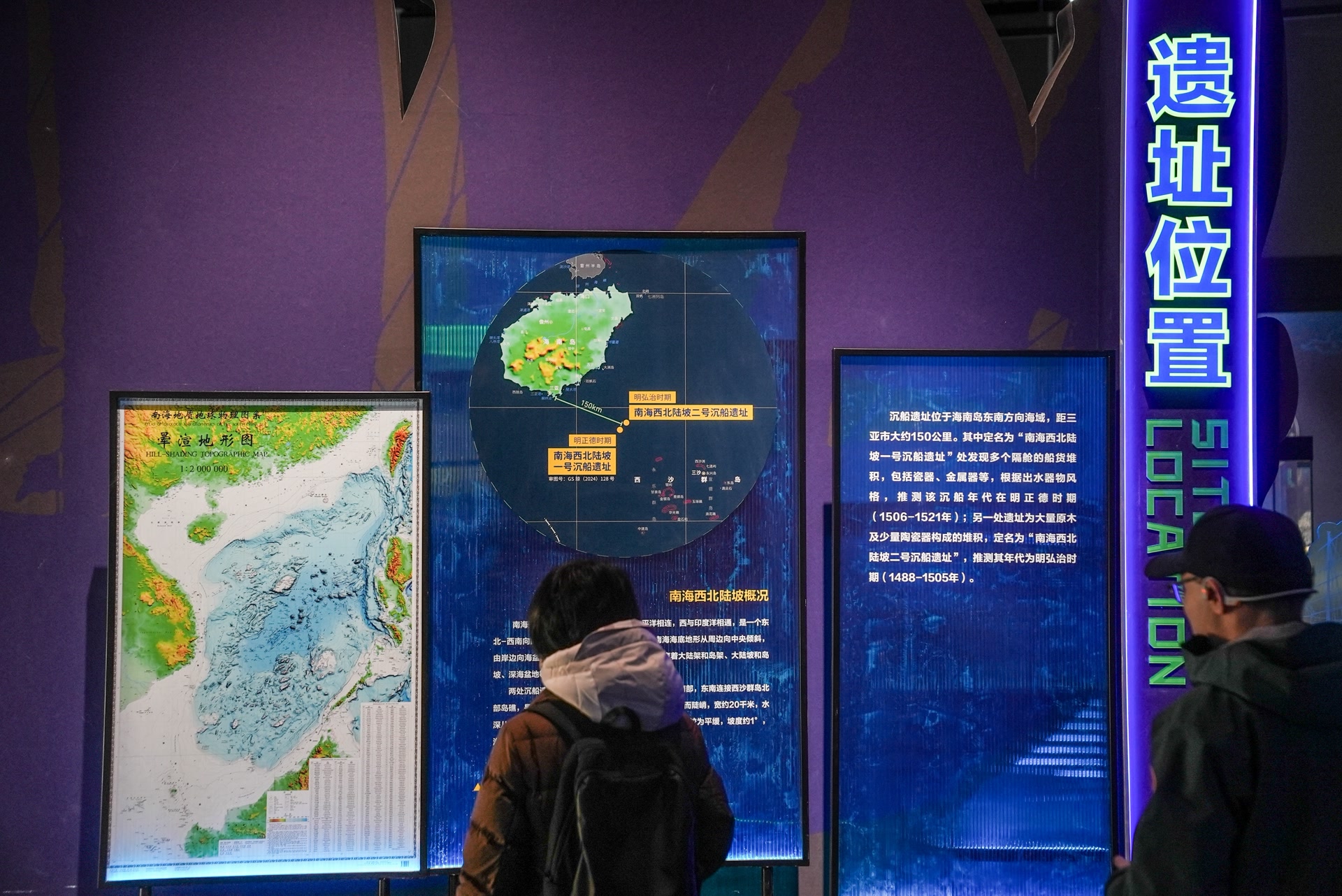 深海考古的新科技同步亮相展厅。“重点展示了深海考古的深海环境、先进技术和装备,比如‘深海勇士’号载人潜水器模型等,让观众更直观地了解深海考古的复杂性和挑战性。”郑睿瑜说,这些彰显了我国深海科技最前沿的工程智慧,展现了深海科技与水下考古跨界融合、相互促进的美好前景。