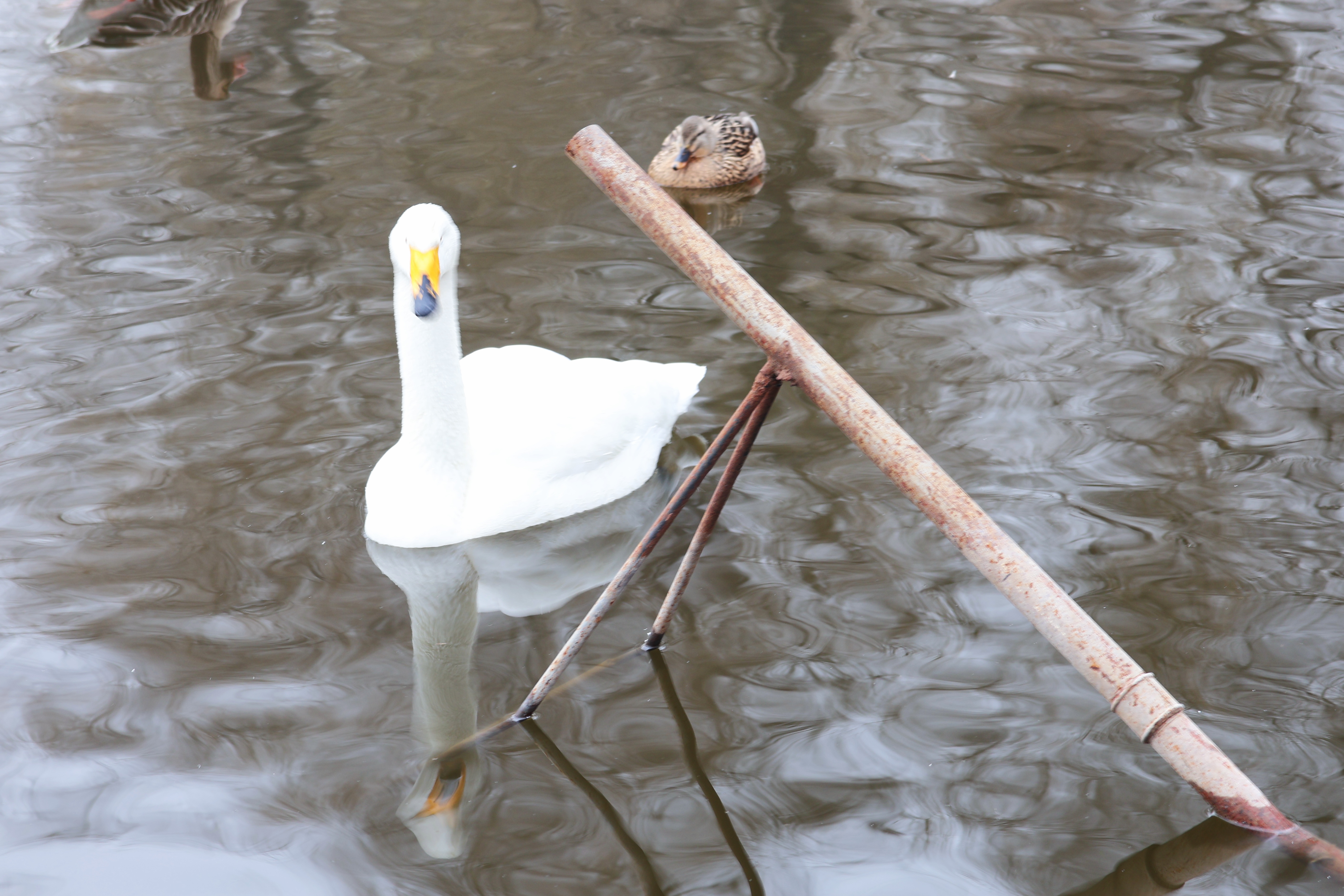 “不少鸿雁就是在这儿繁殖出生的,都在这儿过冬,近两年数量一直在增加。”一名公园动物饲养员介绍。湖面上,两根细长的铁管斜立着,夜间水泵开启,水流搅碎薄冰,露出深色水面。记者现场看到一些白天鹅、大雁曲颈拢翅,将脑袋埋进羽翼,在水边安然休憩。