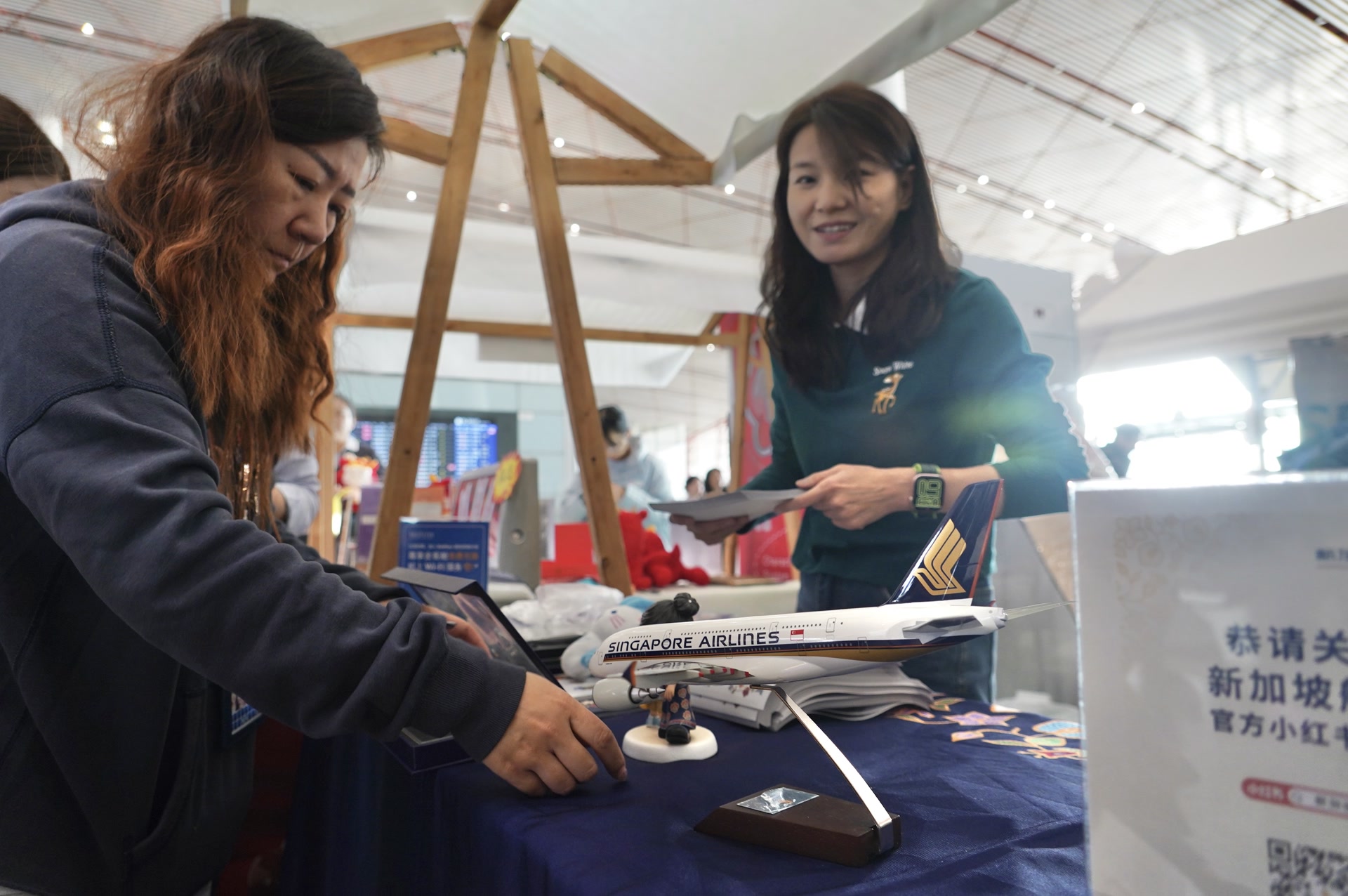 首都机场航旅嘉年华活动由首都机场联合北京市文化和旅游局、首都机场临空经济区管委会、驻场联检单位、各大航空公司及在线商旅平台等30余家单位共同举办。从12月26日起至12月28日,首都机场集团成员单位、首都机场驻场中外航空公司、在线商旅平台及航站楼内商户等近40家单位还联合推出了航旅市集,构建起集航空服务、地方文旅、特色商品于一体的消费场景。首都机场设置的盲盒抽奖、打卡集章活动成为人气展位。旅客注册首都机场会员并分享打卡内容,即可参与抽奖,在获得限定“都都”集章地图,赢取国航、海航等航司免票、升舱券及飞机模型、文创周边等惊喜好礼的同时,还能在集章的过程中了解有关雪具托运、候机中转等首都机场特色服务产品。