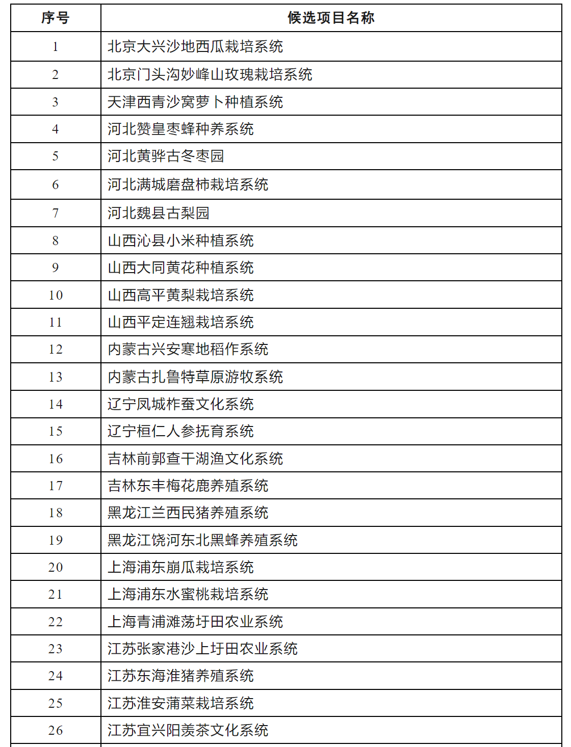 第八批中国重要农业文化遗产候选项目名单