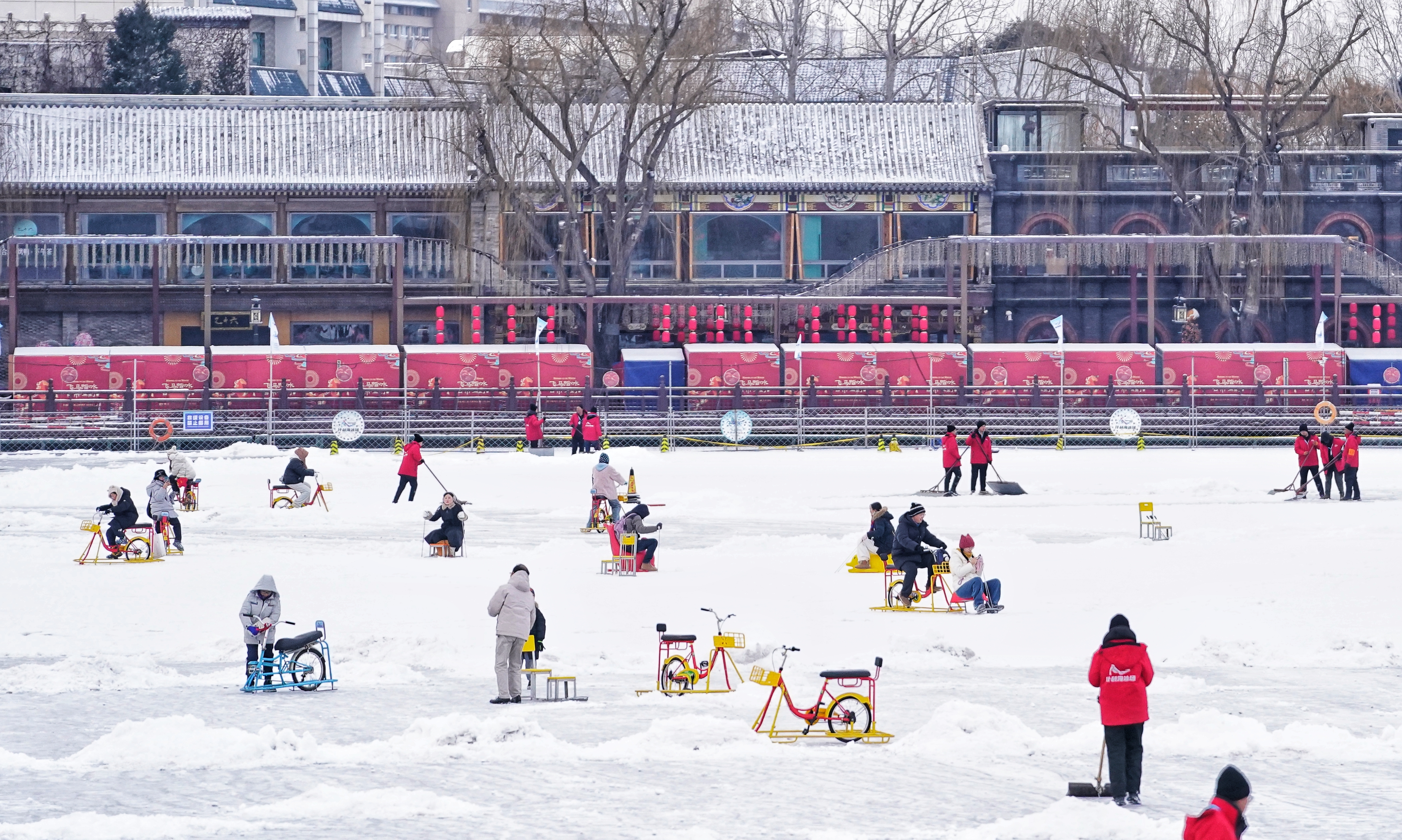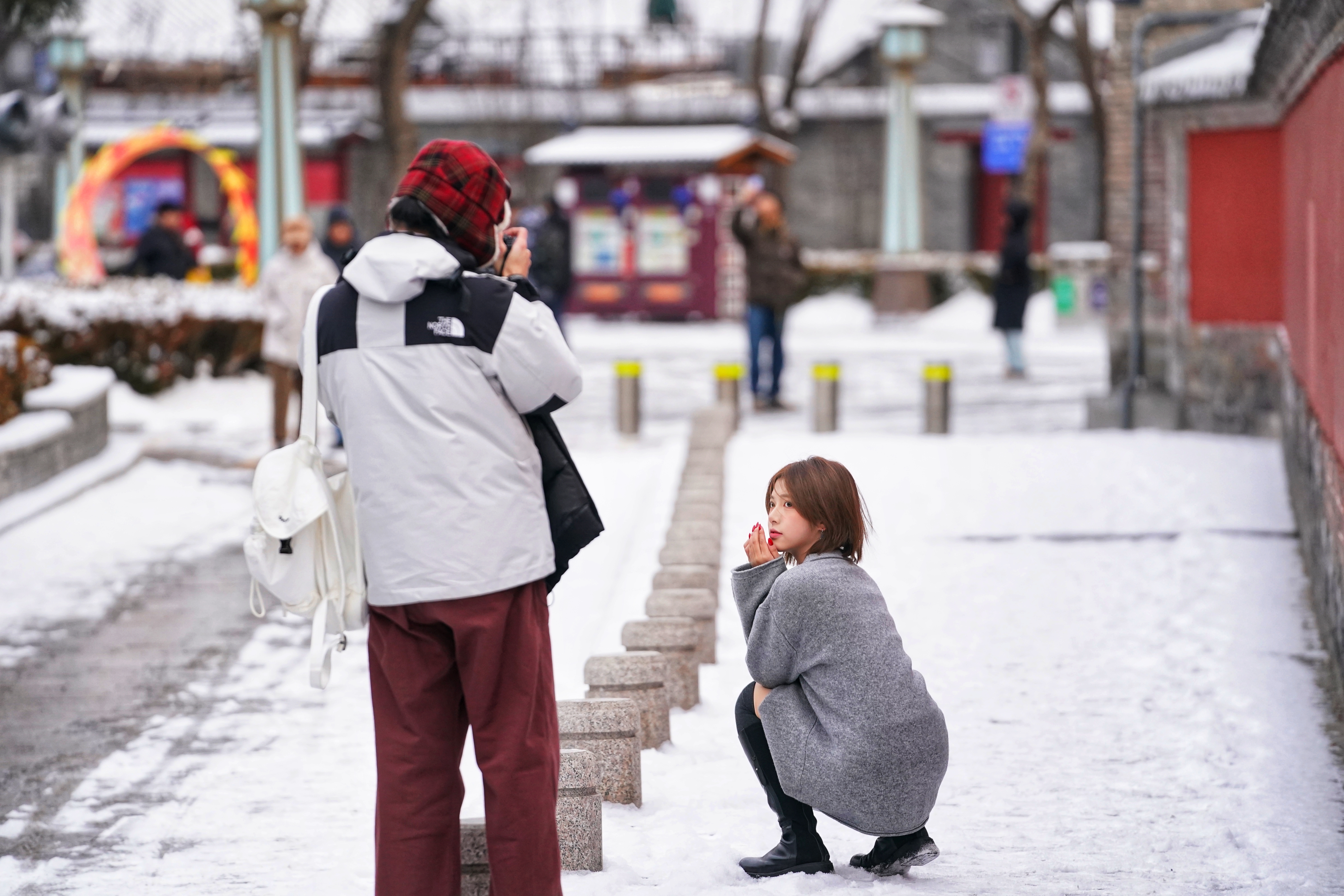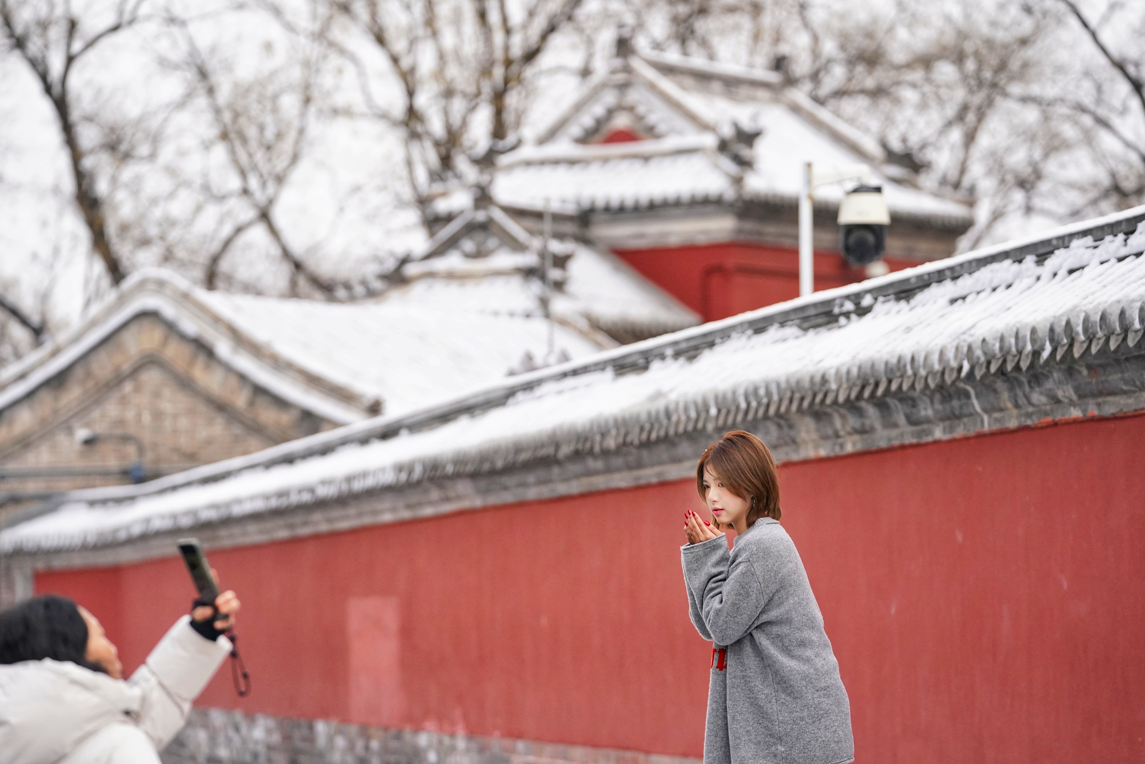 1月18日,新年初雪后的京城银装素裹,在钟鼓楼和什刹海景区,红墙灰瓦间,古老建筑与白雪相映成趣,尽显古都韵味 。市民、游客沉浸在雪景与古建筑同框的美景之中,逐雪趣、赏雪景,感受古韵交织的独特意境。