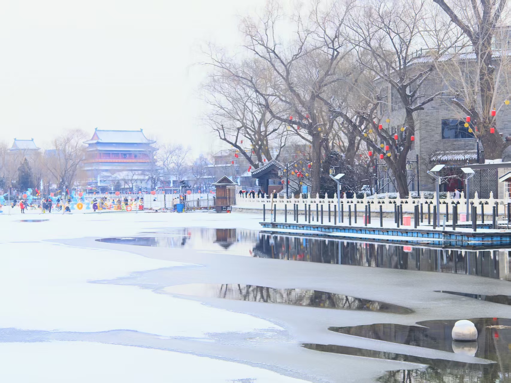 什刹海边古韵盎然!老北京胡同里灯笼披薄雪,分外静美