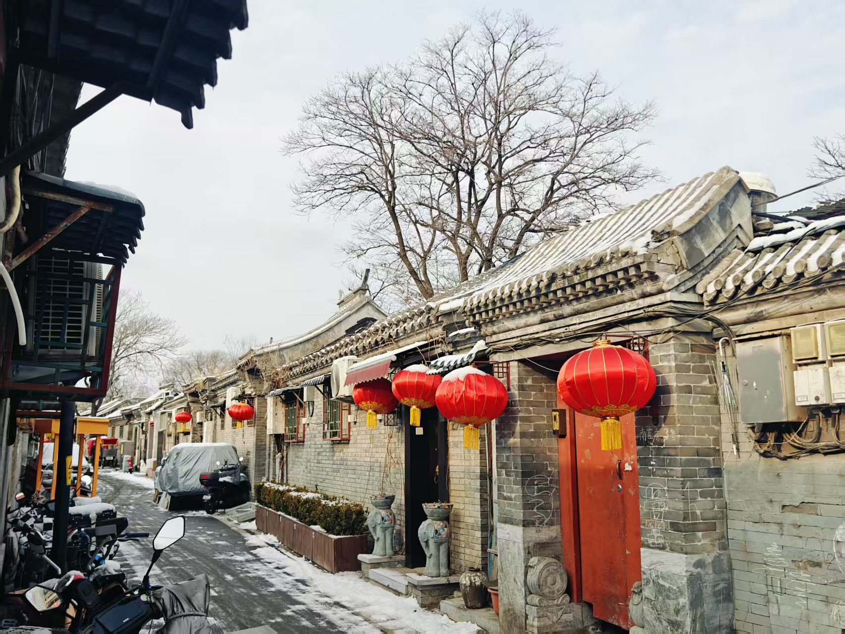 雪住了,胡同里的红灯笼上积着一层薄雪,红白相映,看着特别干净。