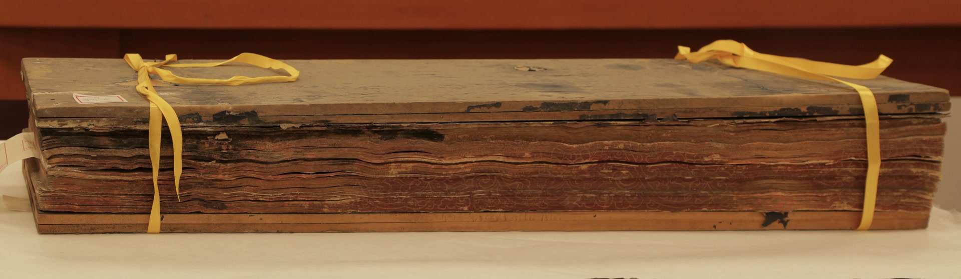 看到藏文古籍《大藏经·甘珠尔》时,国图文献修复组修复师宋玥心里一沉:300多叶的书叶一半以上严重发霉、粘连,难以揭开;大量的水渍、污渍让部分书叶破损、变色;书叶上下方的夹板也出现发霉、破损……“病害种类多,而且病情很严重。”初次“面诊”,宋玥就感受到了挑战。“体检”是重中之重:夹板木质检测、经帘材质及颜料成分分析、纸张纤维的分析检测……十几项分析报告印证了宋玥最初的观察。