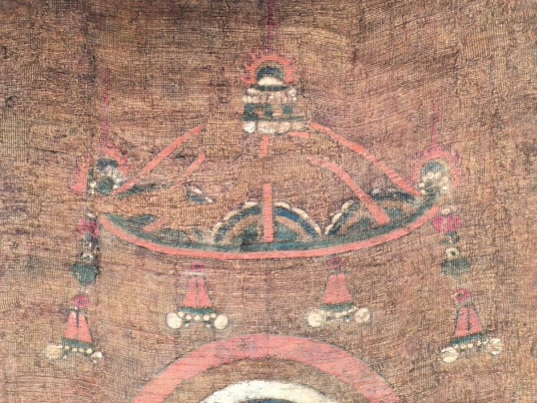 经过进一步的分析讨论后,原状修复方案胜出。“麻布画使用的是重彩,由于年代久远,所使用的矿物颜料已经在织物的缝隙中结块,如果有过大的扰动,颜料很容易脱落,对文物造成二次伤害。”宋晶解释,原状修复,能最大限度减少对文物的干预。
