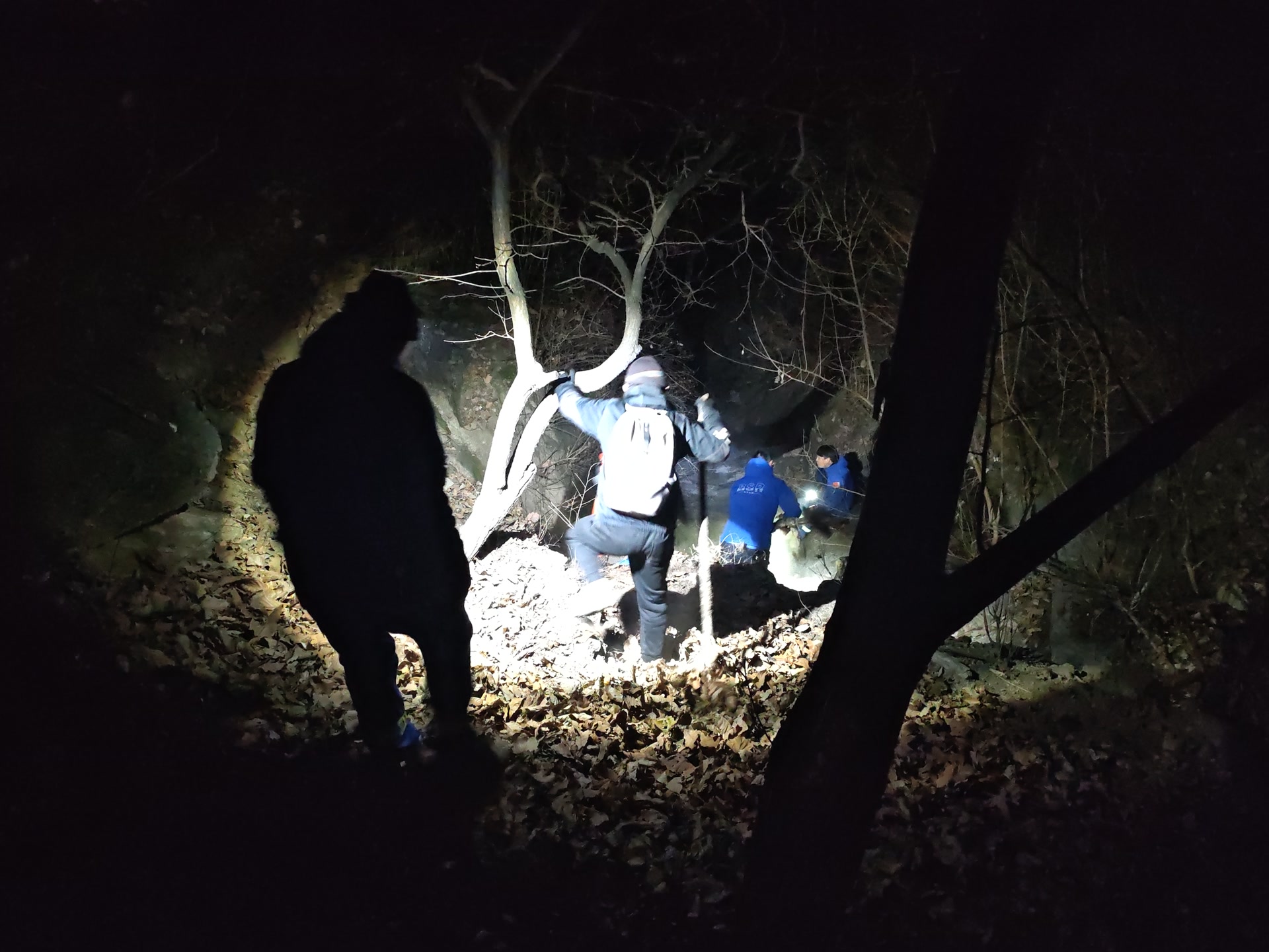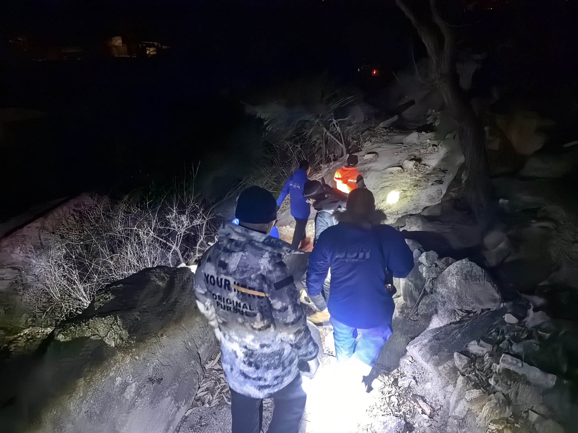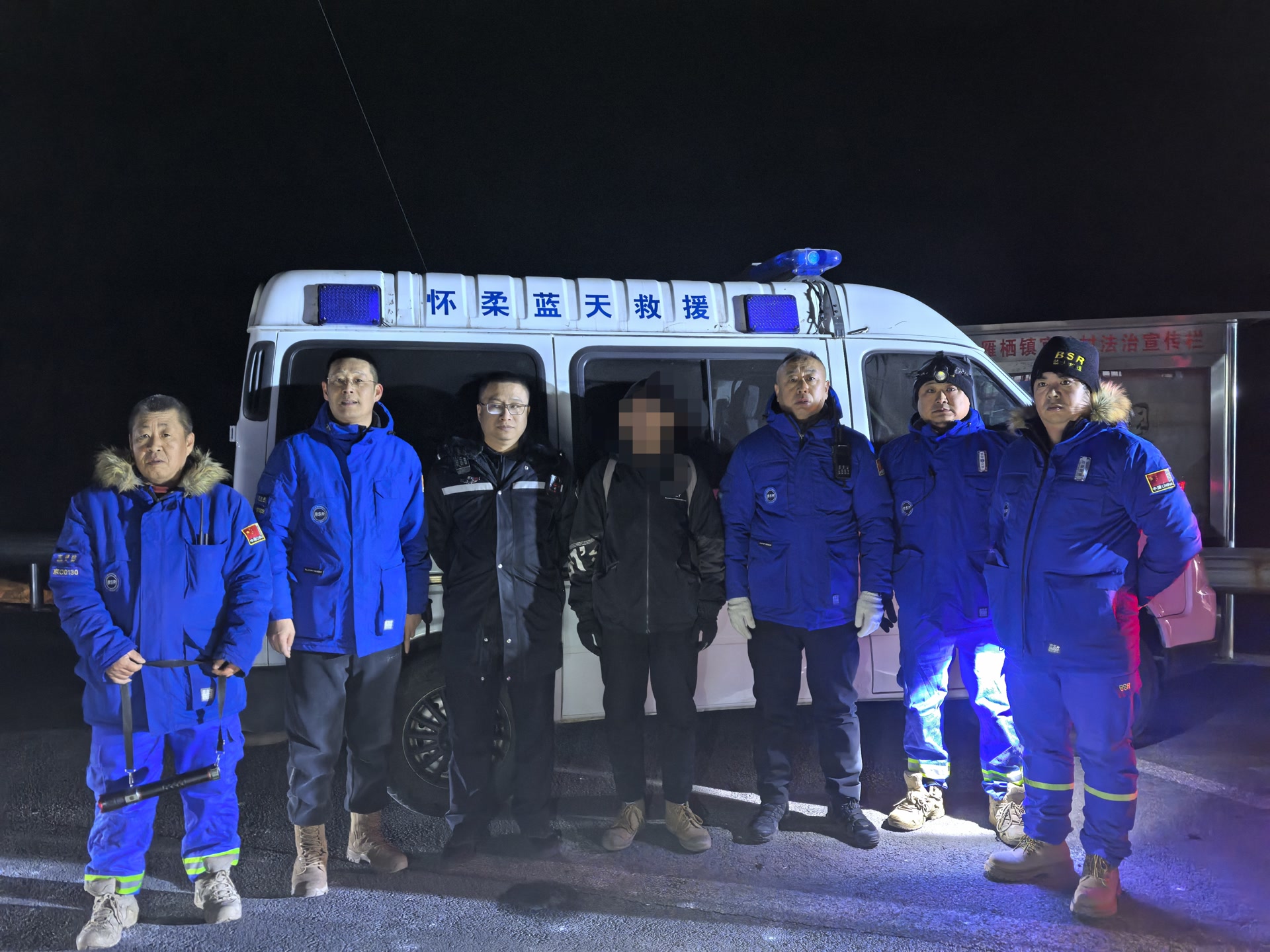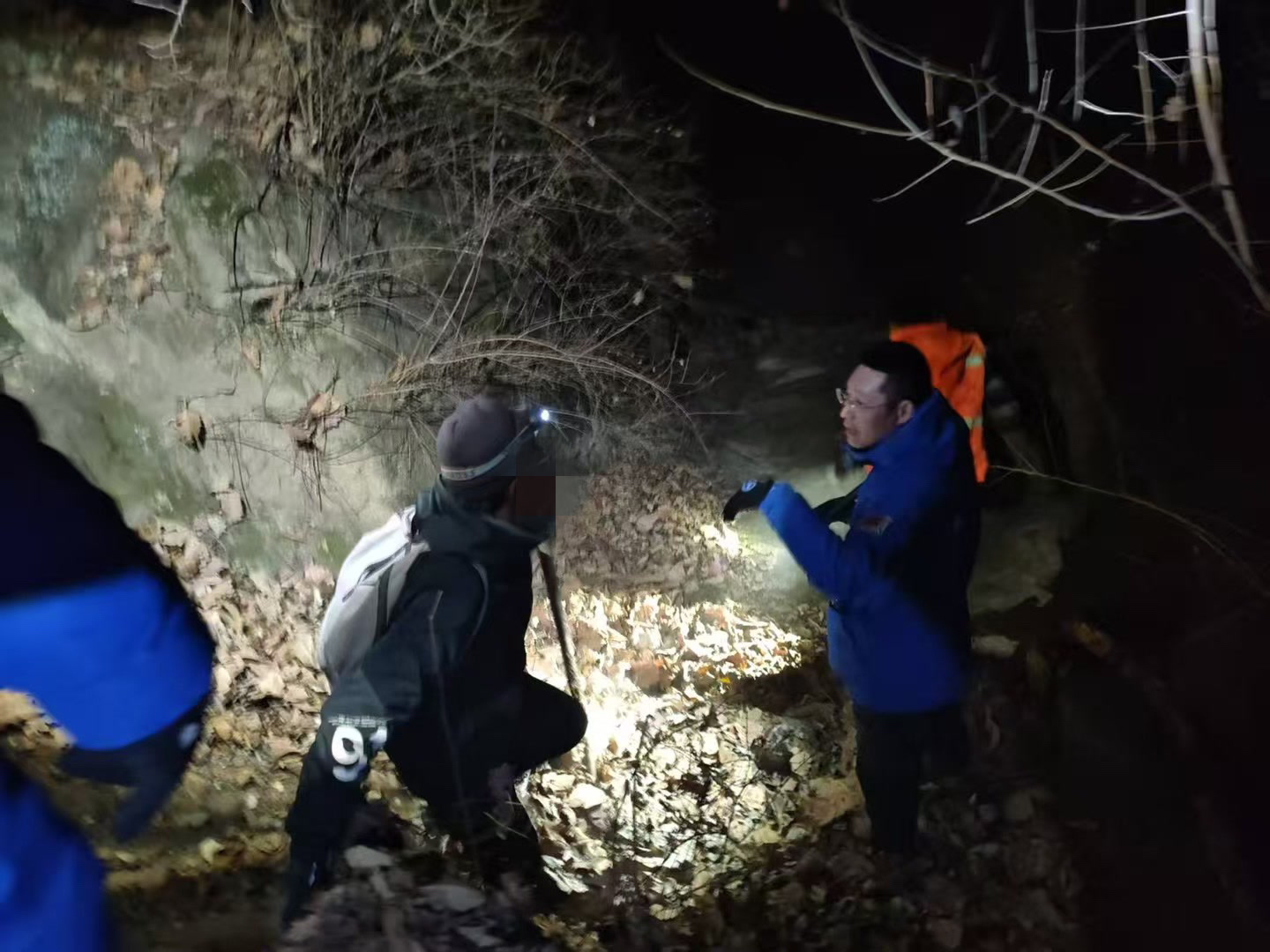 当晚接到求助后,怀柔蓝天救援队队长田会武立即组织7人搜救小组,携带照明、保暖和应急装备上山搜救。22日0时22分,救援队抵达官地村,与公安民警及熟悉地形的村委会向导会合后,迅速进山。