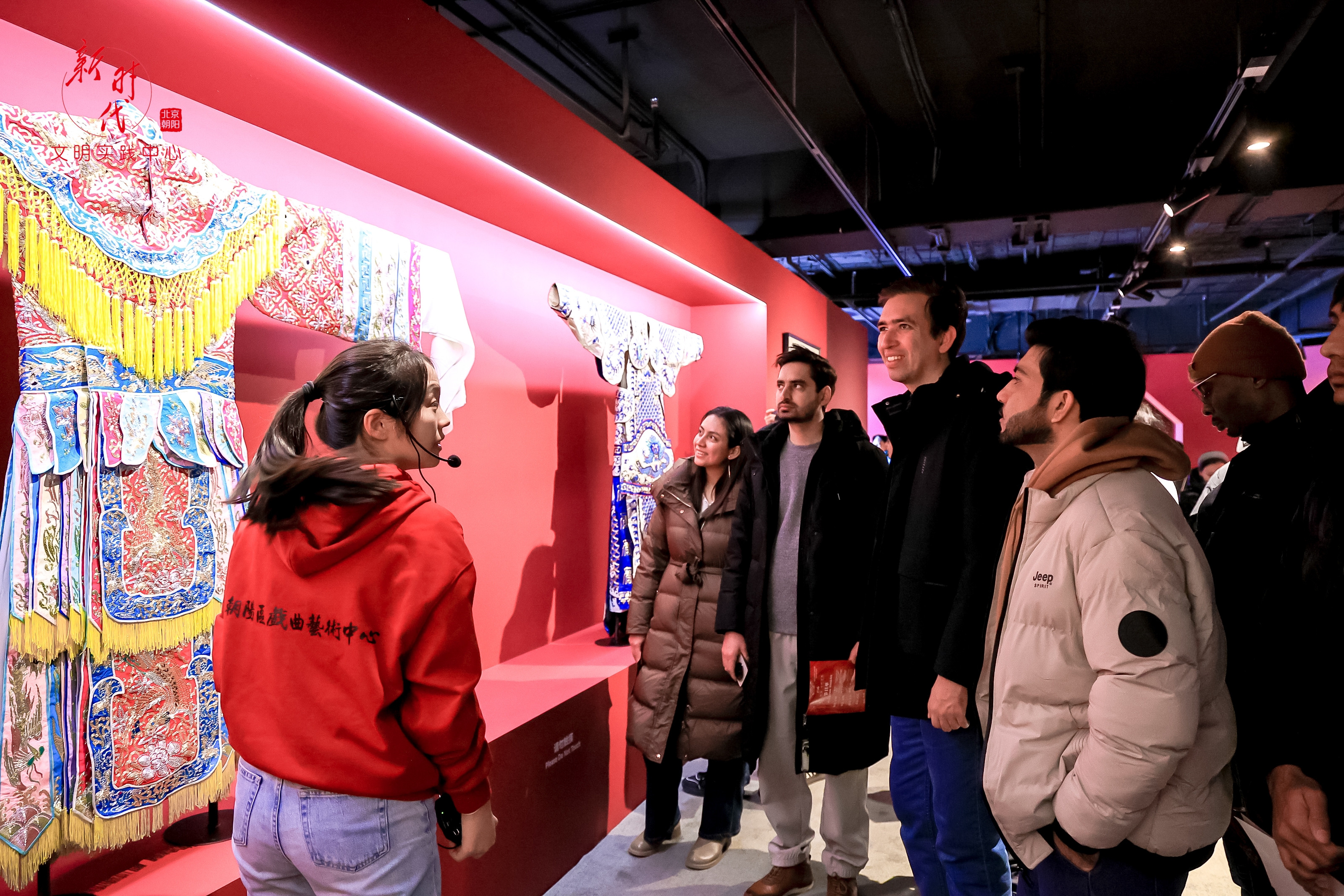 活动伊始,中外嘉宾在双语讲解员的引导下,步入“百年风华·国粹新声”京剧艺术主题展,一件件珍贵展品静静陈列,诉说着京剧艺术的百年传承。