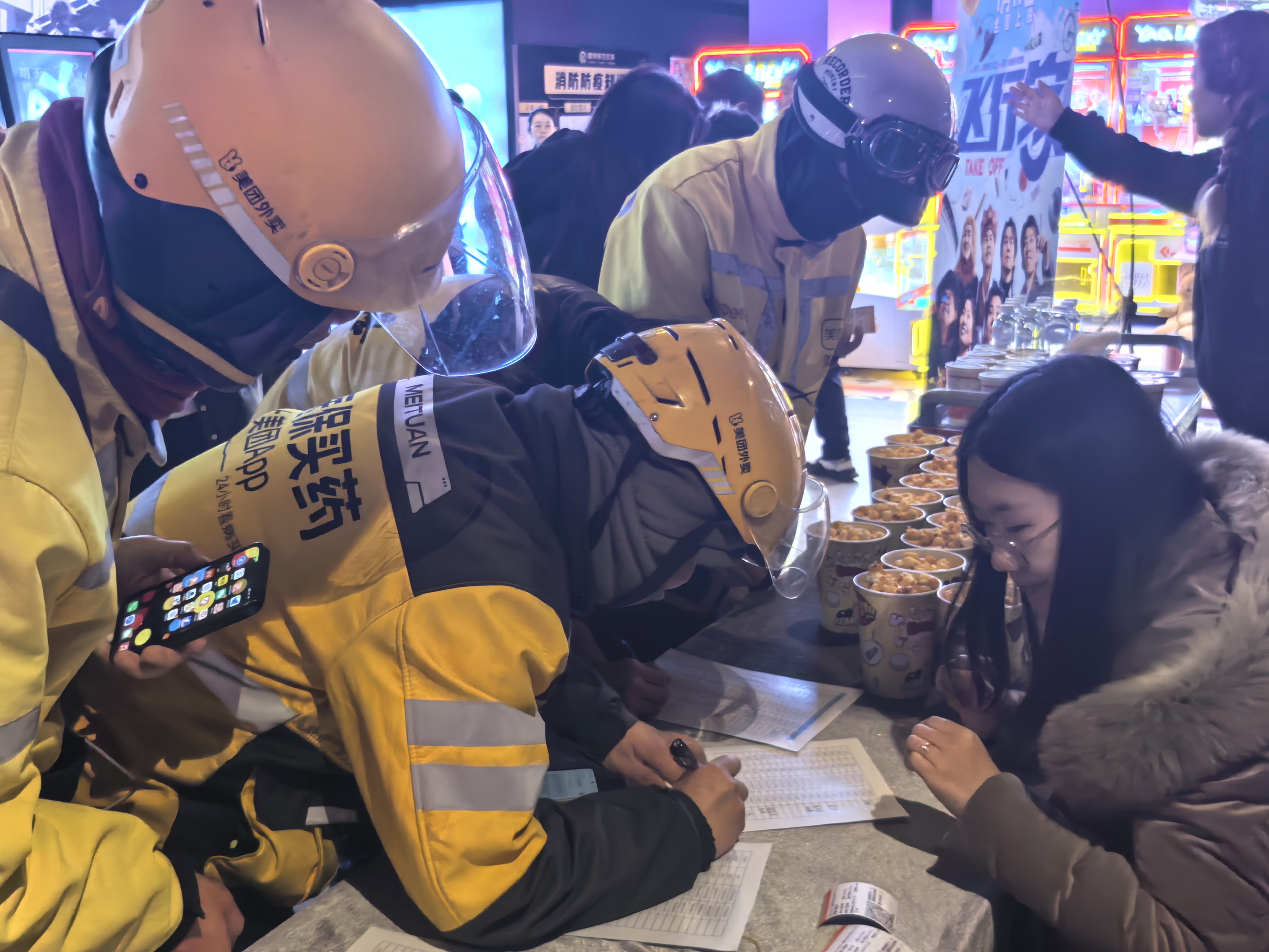 从事外卖配送好些年的杨师傅,风里来雨里去的日常让他对影片故事有着格外深刻的体会,“平时每天忙着接单送单,没有机会看电影,今天这场观影可太高兴了,还有爆米花和可乐。”他说电影里面的主人公就像他们,奔波中有辛苦也有收获,再累也会坚守。