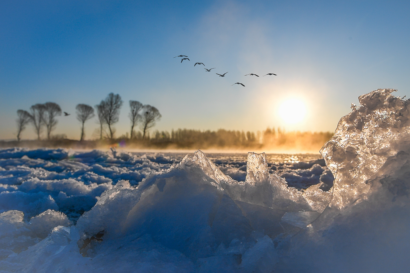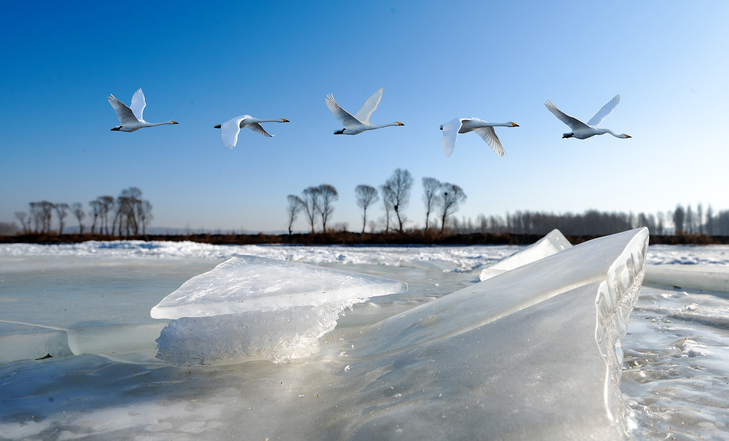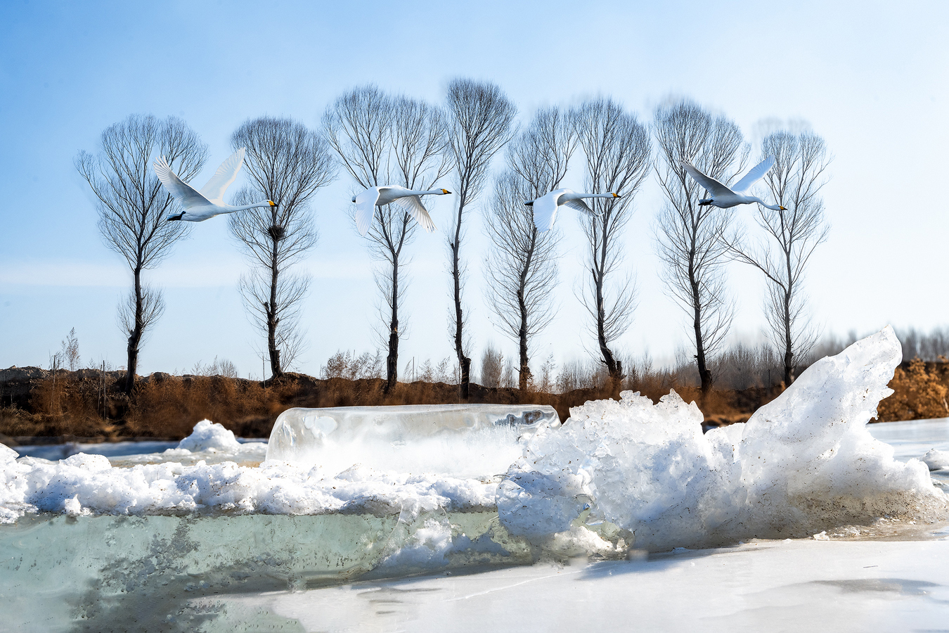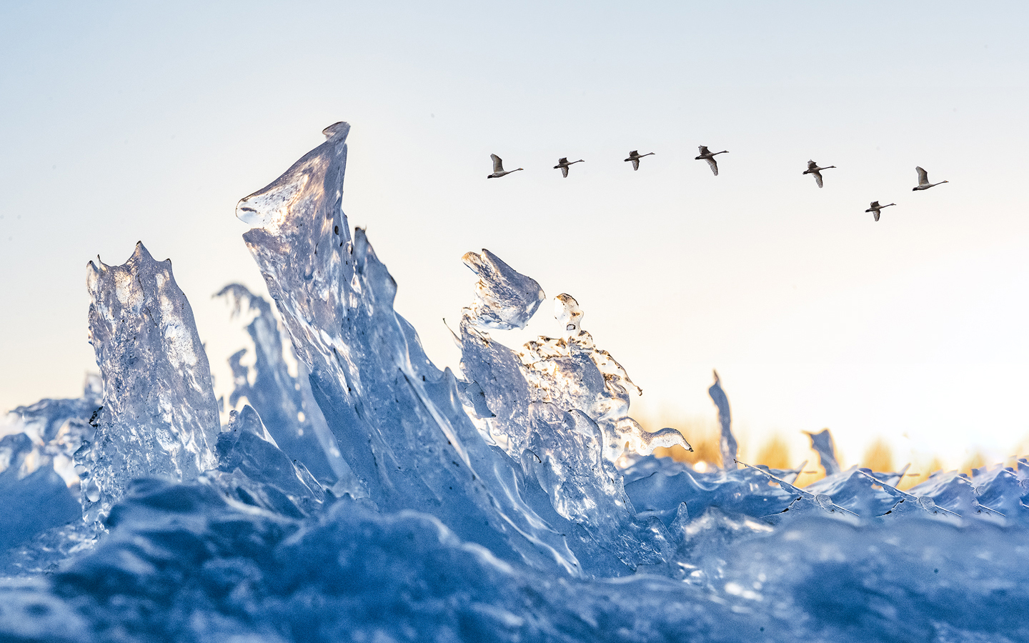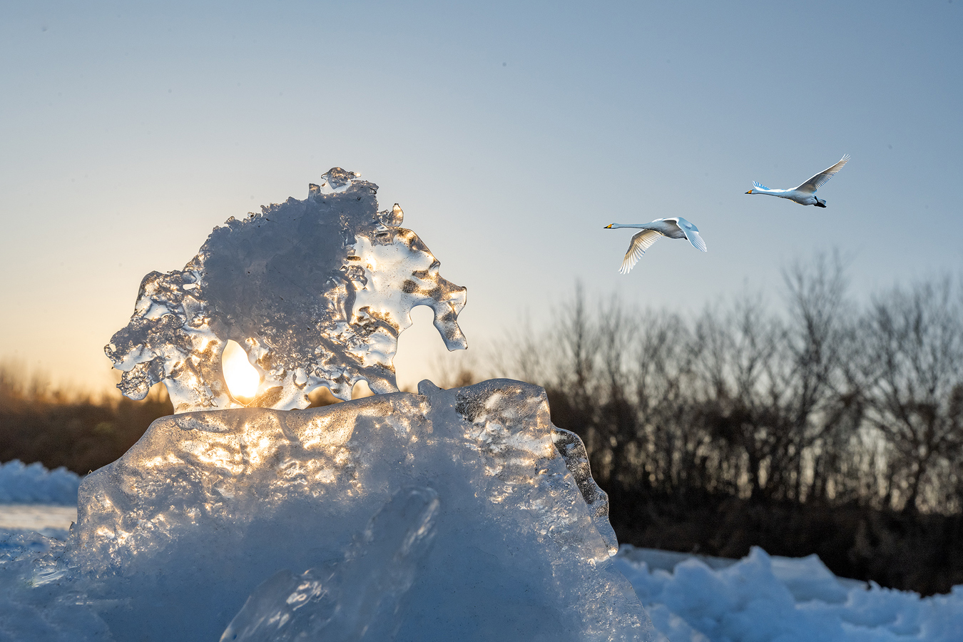 拍客看中国 | 辽宁朝阳:天鹅冰河中起舞,化身白色精灵