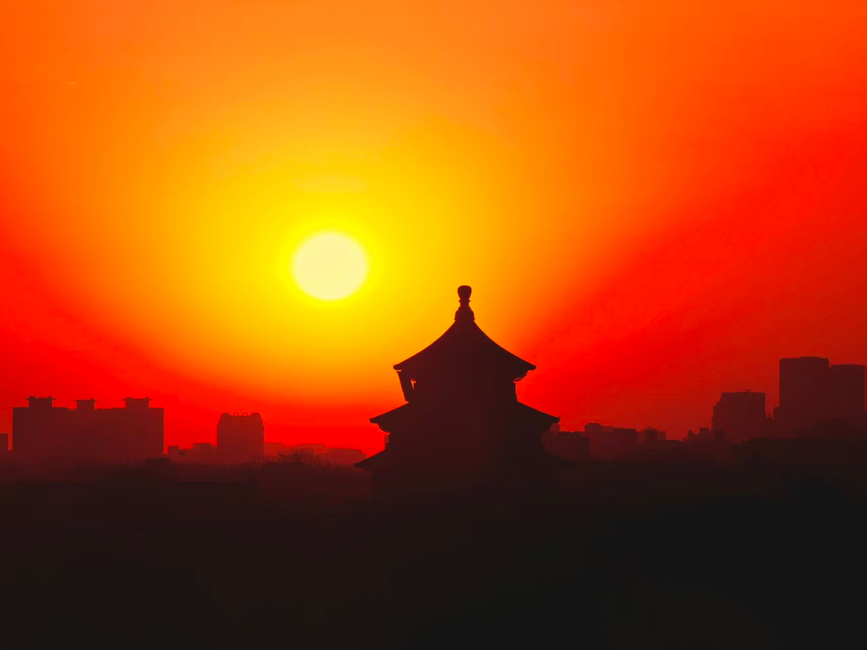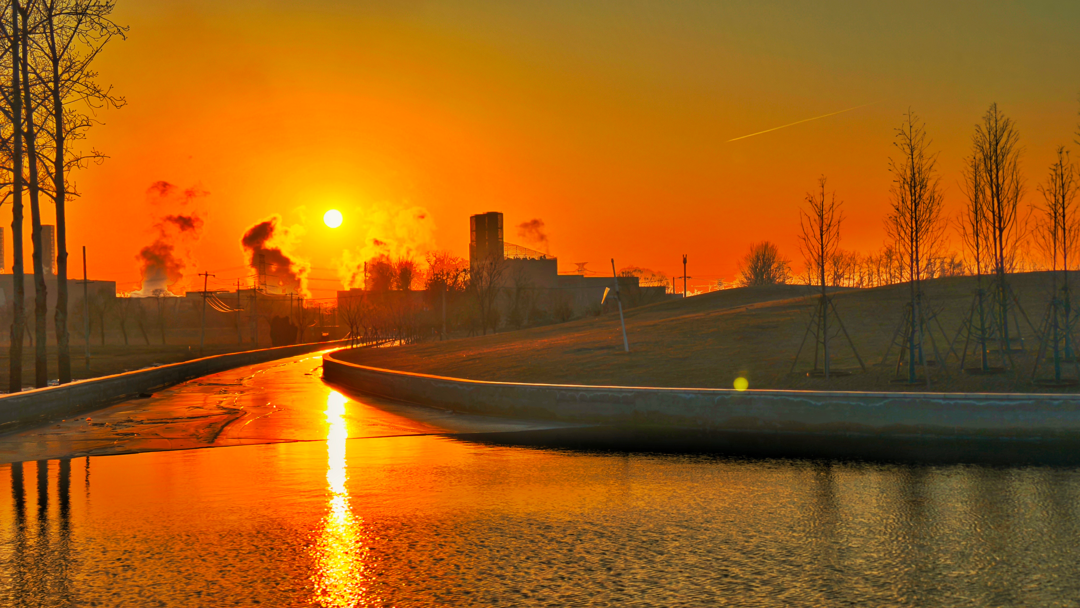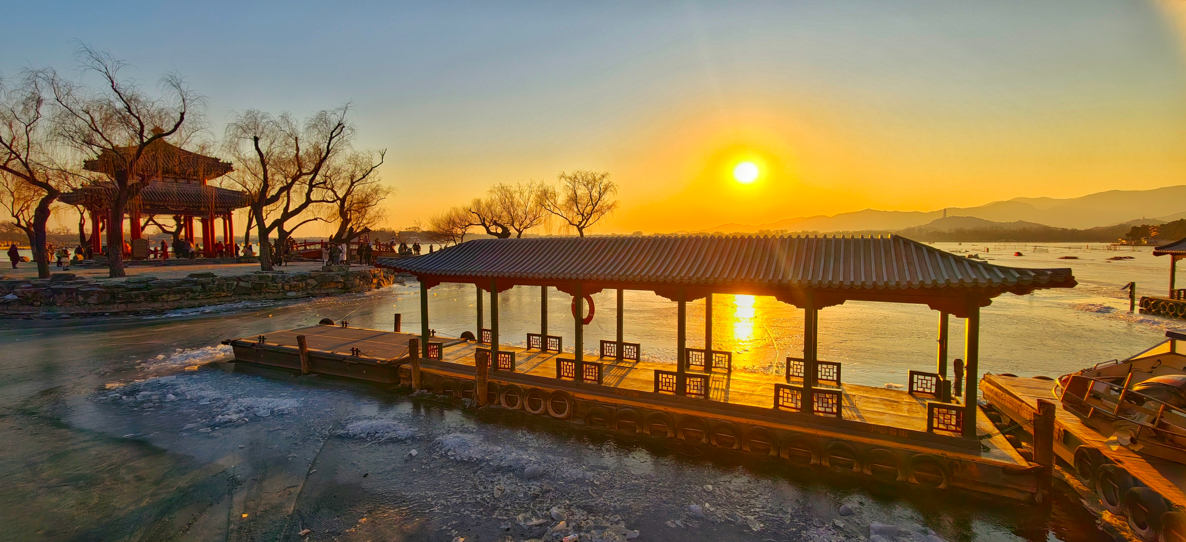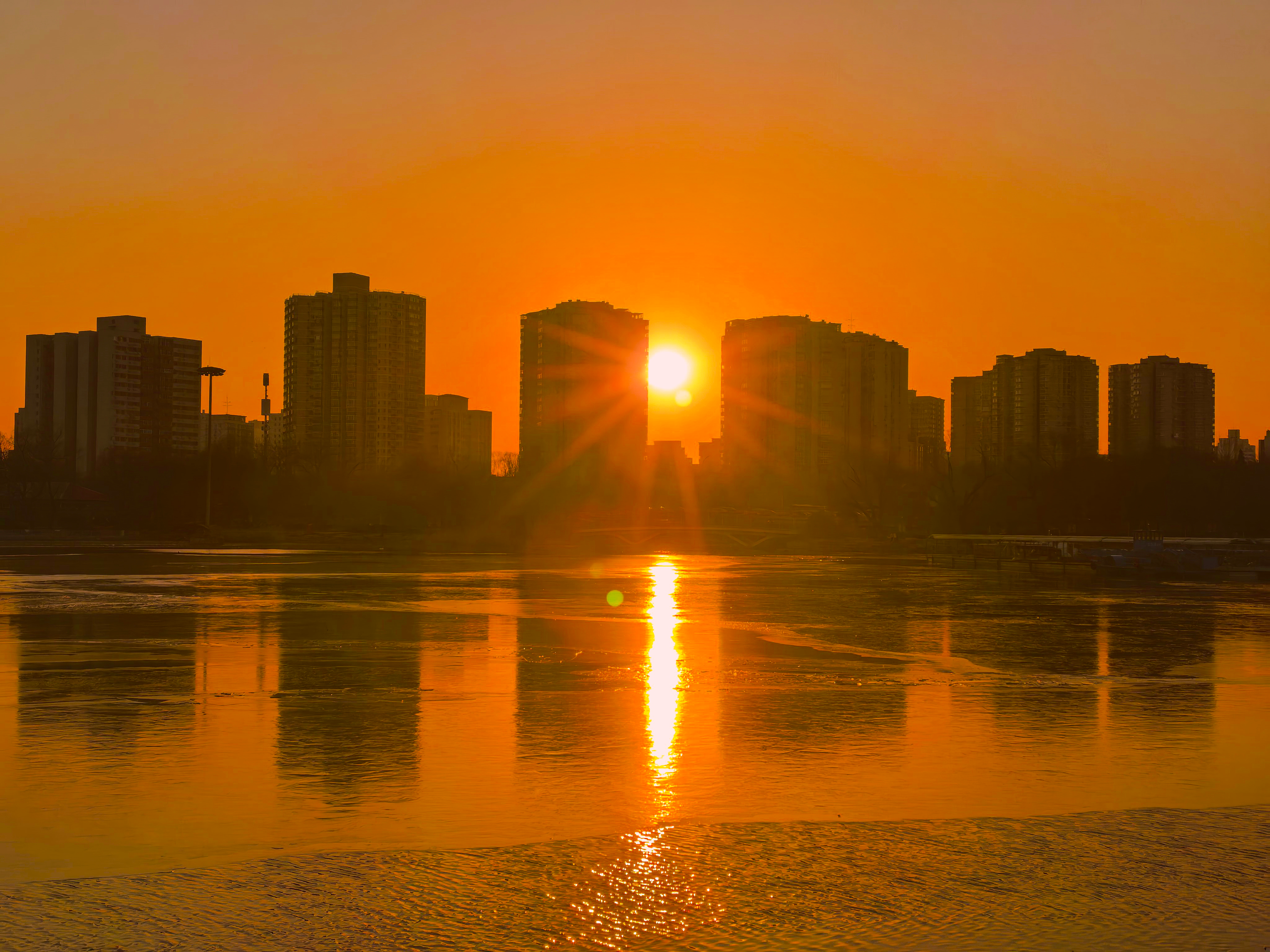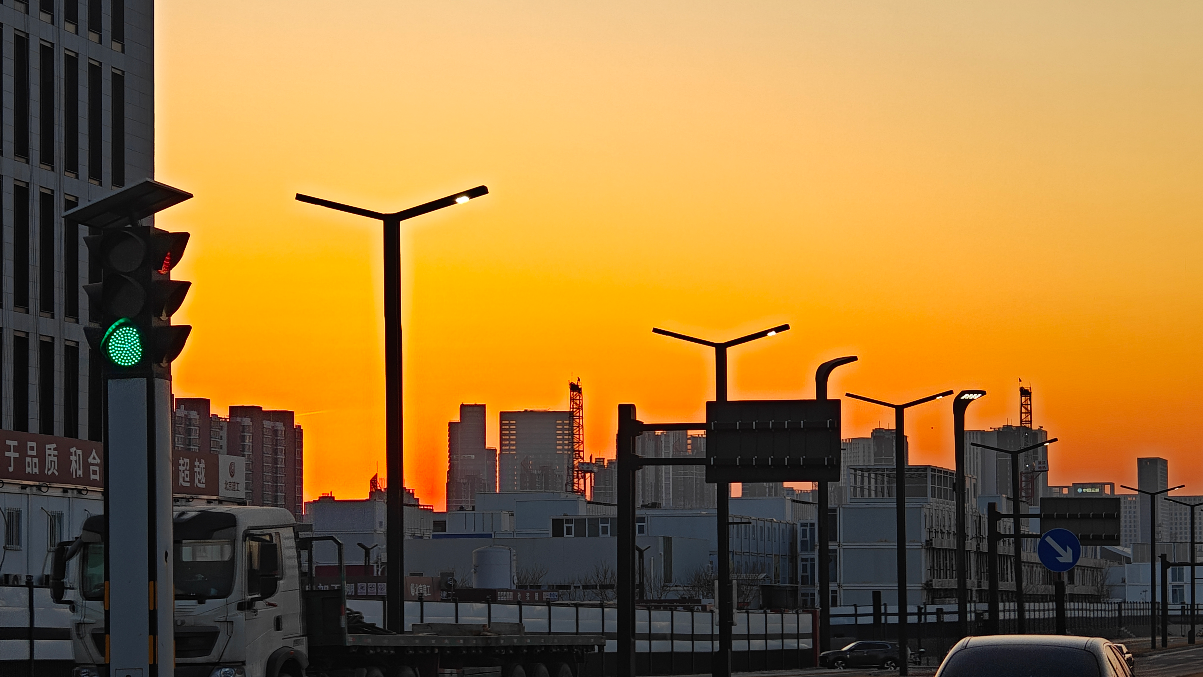 2月8日,橙色的夕阳缓缓落下,把天空染得温暖而喜庆。归途的人影在余晖中拉长,街巷渐渐有了年的味道。