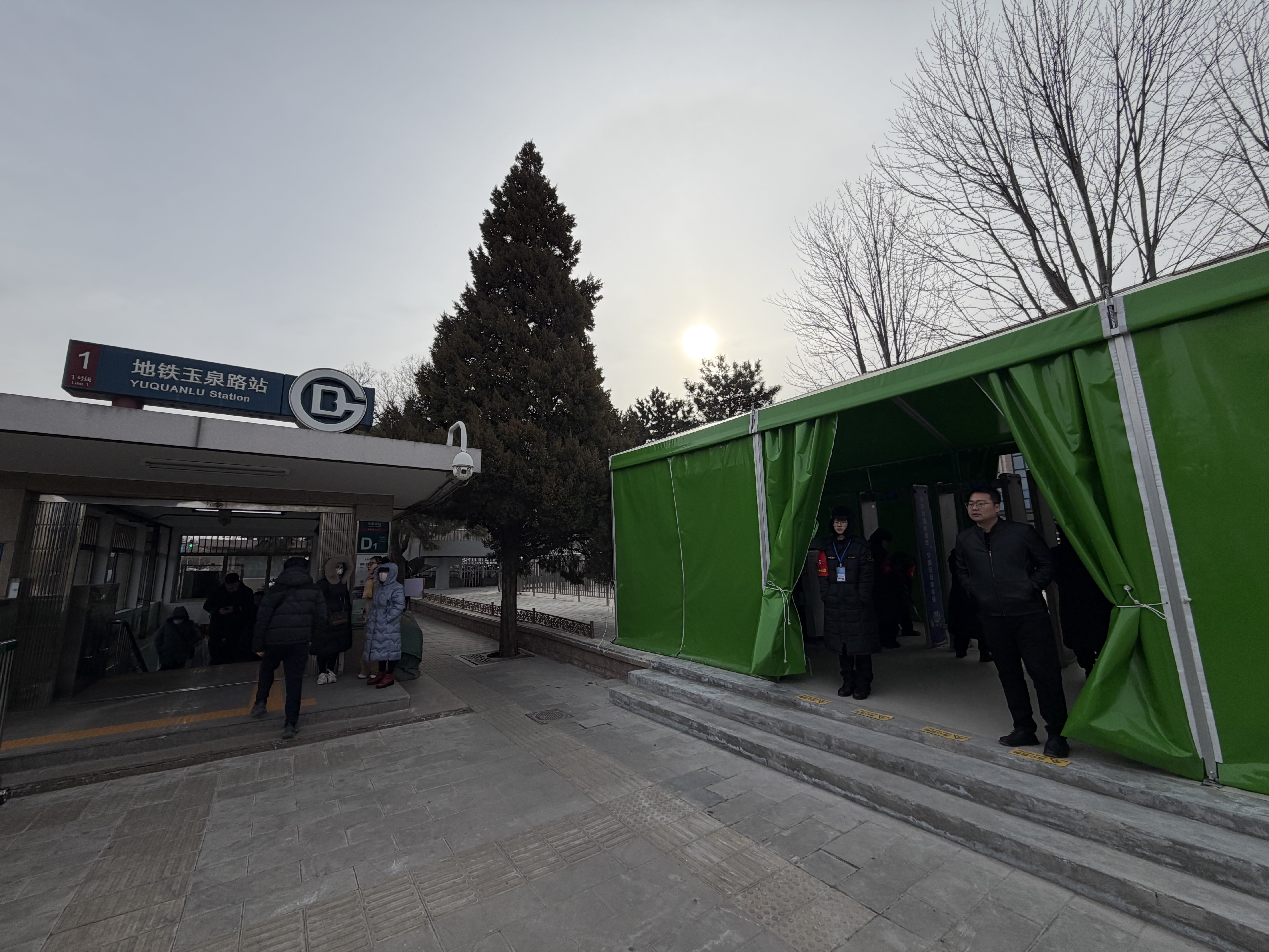 记者注意到,玉泉路站D口外,已搭建起了绿色安检大棚。“我们新增2个安检点,同时启用固定及移动式围栏规范客流走向,客流高峰时段启用,同步推行出入口‘单进单出’运营模式,提升通行效率。”梁军介绍。