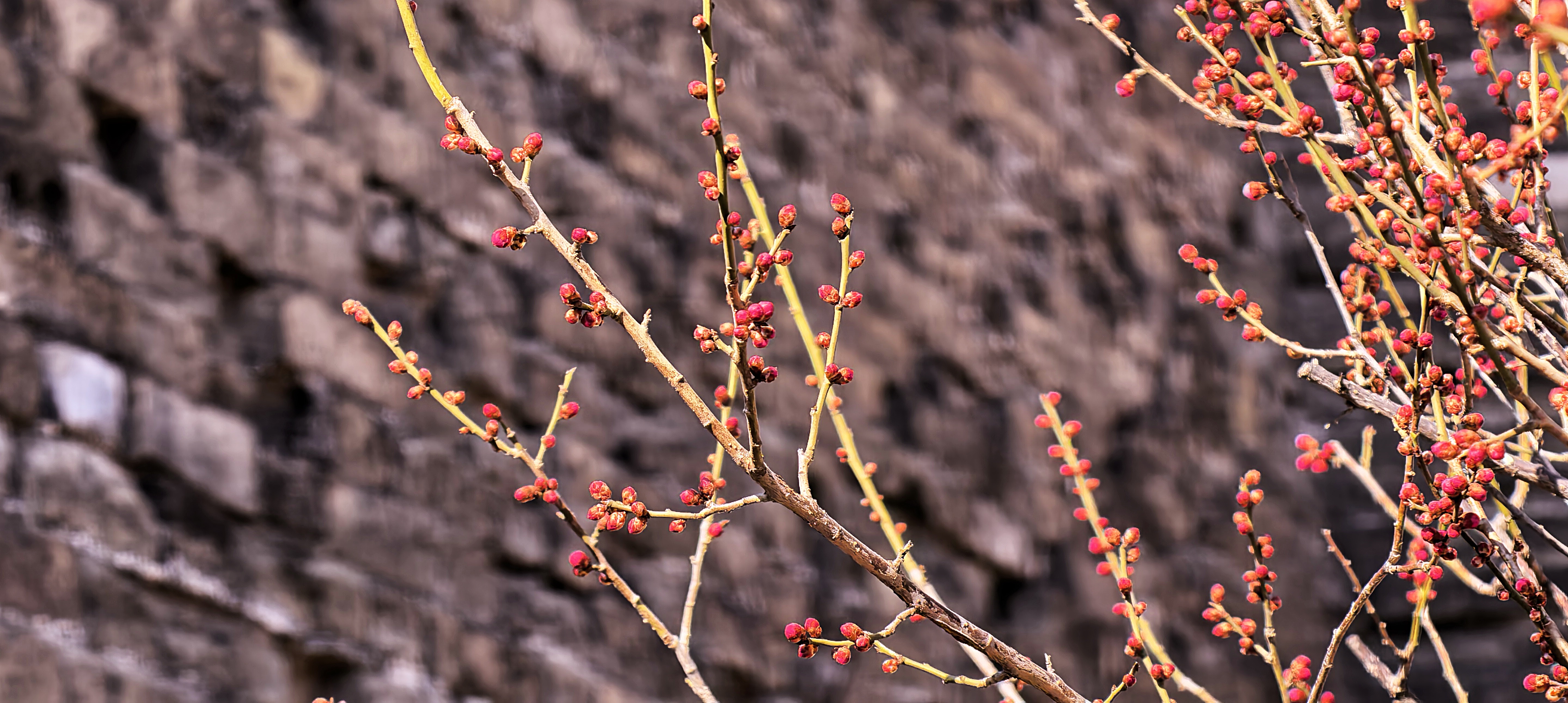 2月20日,北京明城墙遗址公园,红梅绽放。