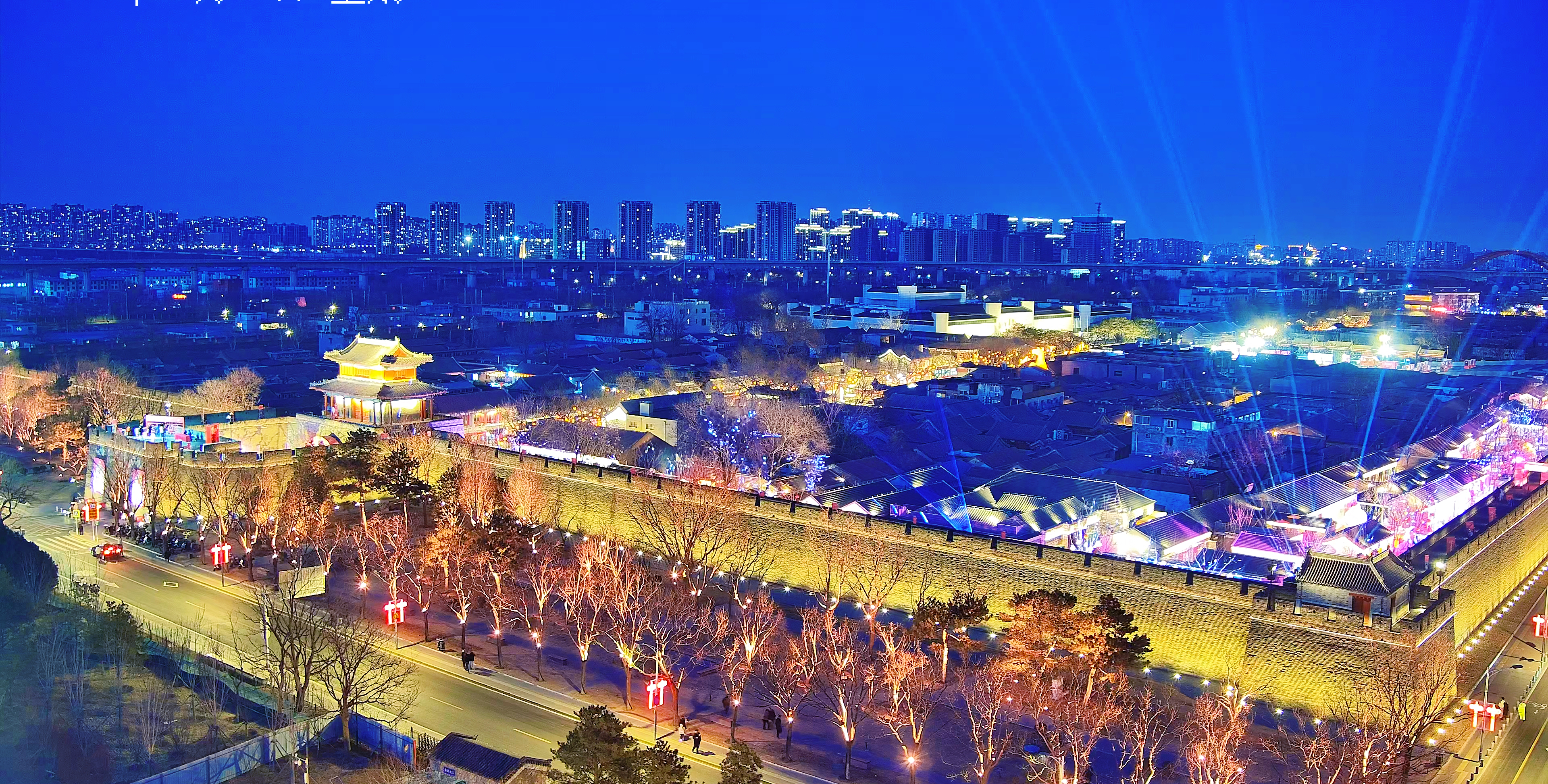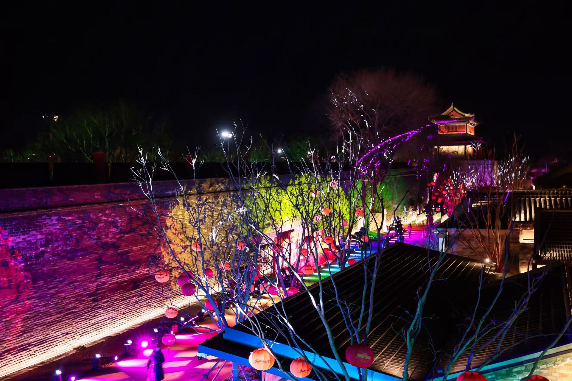 作为此次“馆桥城园”全部点亮的核心一环,宛平城城墙的全面亮化备受关注。贯穿东西大街的数千盏灯笼与城墙上的投光灯同步点亮,将整座古城装点得流光溢彩。依托西南垣城墙设置的西游主题实景剧本杀《戏游记》中,30位真人NPC在灯光下与游客互动,古老的城墙成为沉浸式演出的天然幕布。