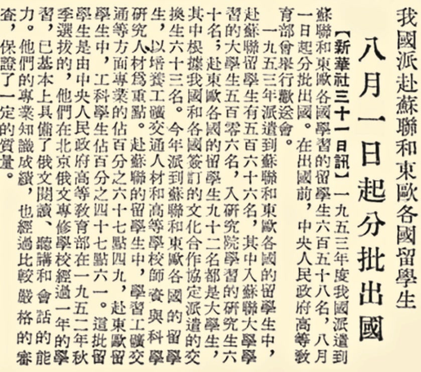 那时,出国人员较少,并且以因公为主,主要有政府官员、公派留学生、援建专家、工程技术人员等。1953年,我国派遣了658名留学生前往苏联和东欧各国学习。像这样的公派留学生,均持用外交部核发的普通护照。(1953年8月1日《北京日报》1版,《八月一日起分批出国》)