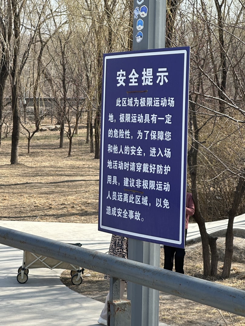 记者注意到,在这块区域旁,也立着多块提示牌,上边提醒着:此区域为极限运动场地,具有一定危险性,进入场地活动时请穿戴好防护用具,建议非极限运动人员远离此区域。但显然,这样的警示并未引起家长的足够重视。