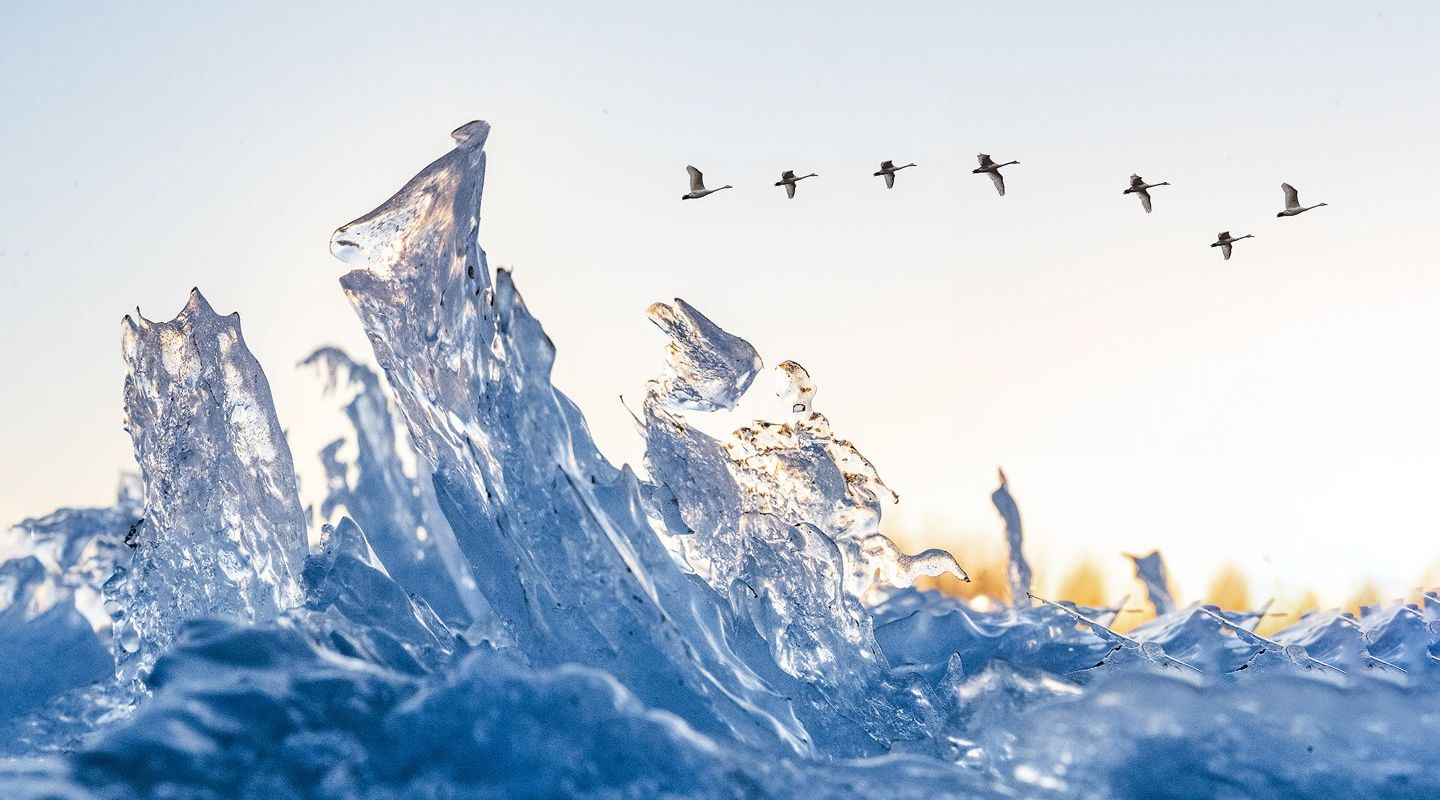 拍客看中国 | 辽宁朝阳:天鹅冰河中起舞,化身白色精灵