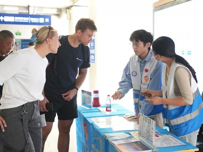 精准指引方位!大学生“活地图”“英文通”车站上岗