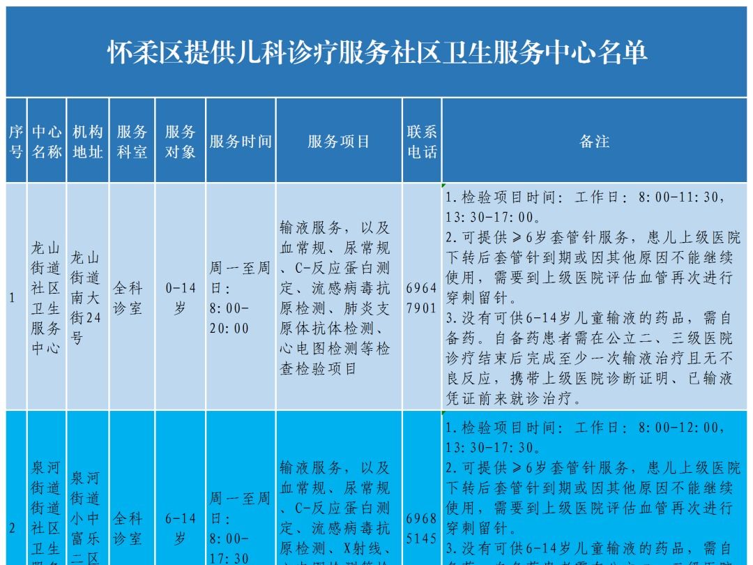 怀柔区16家社区卫生服务中心全部可提供儿科诊疗服务