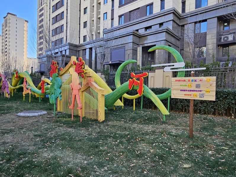 平谷街头上新地景艺术,是用冬剪桃枝做的