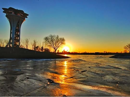 京城拍客今日精选|一鹭惊鸿冲晓雾 清波碎影照雪姿