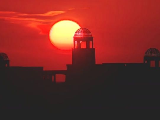 北京上空,火红的大太阳将天际染得如梦似幻