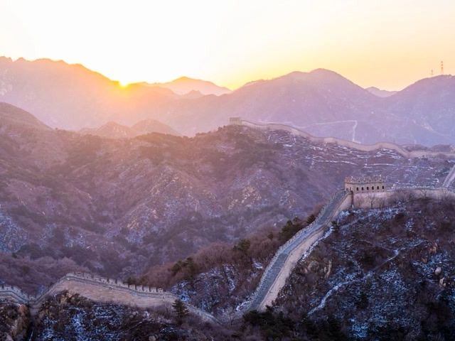 美图 | 粉色朝霞映长城,八达岭新年日出超浪漫