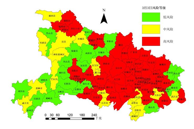 2、风险等级评估依据中国疾病预防控制信息系统 “传染病监测”和“突发公共卫生事件信息管理系统”模块中的各县(市、区)的新增确诊病例数、累计确诊病例数和聚集性疫情数据进行综合研判。